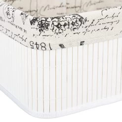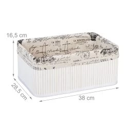 Schaffen Sie mit diesem faltbaren Aufbewahrungskorb Ordnung in Ihrem Zuhause. Stellen Sie die Sortierbox ins Bad, ins Wohnzimmer oder als Organizer in den Kleiderschrank. Das dekorative Körbchen passt in nahezu jedes Interior. Die Ordnungsbox eignet sich hervorragend für kleinere Alltagsgegenstände und Accessoires wie Socken, Fernbedienungen oder Make Up. Das erspart Ihnen in Zukunft lästiges Kramen und Suchen. Der Stoffüberzug der Bambus Allzweckbox ist mit französischen Aufdrucken verziert.