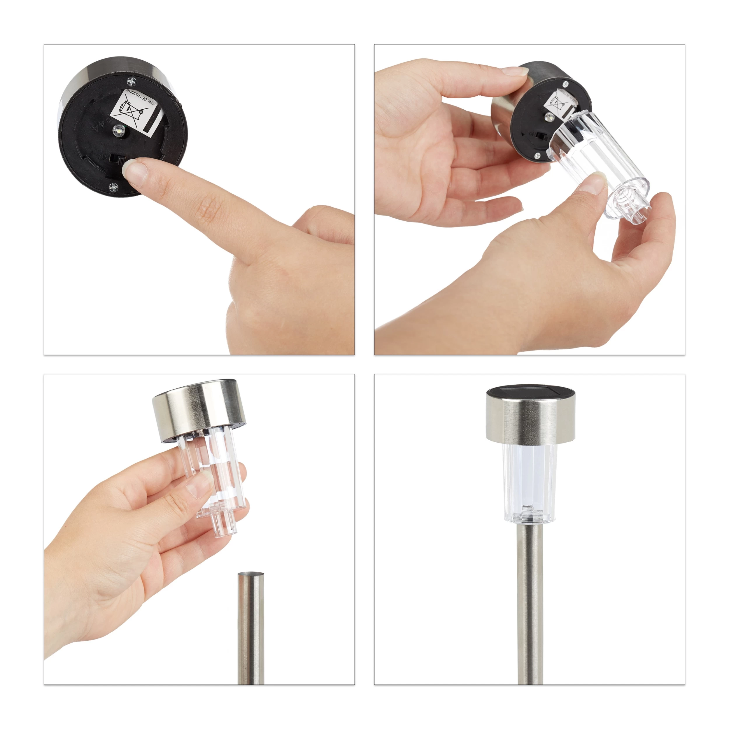 Hinweis: Das Aufladen der Solarlampen ist ausschließlich unter natürlichem Sonnenlicht möglich und nicht unter künstlichen Lichtquellen wie Deckenlampen, Neonlicht, etc.
