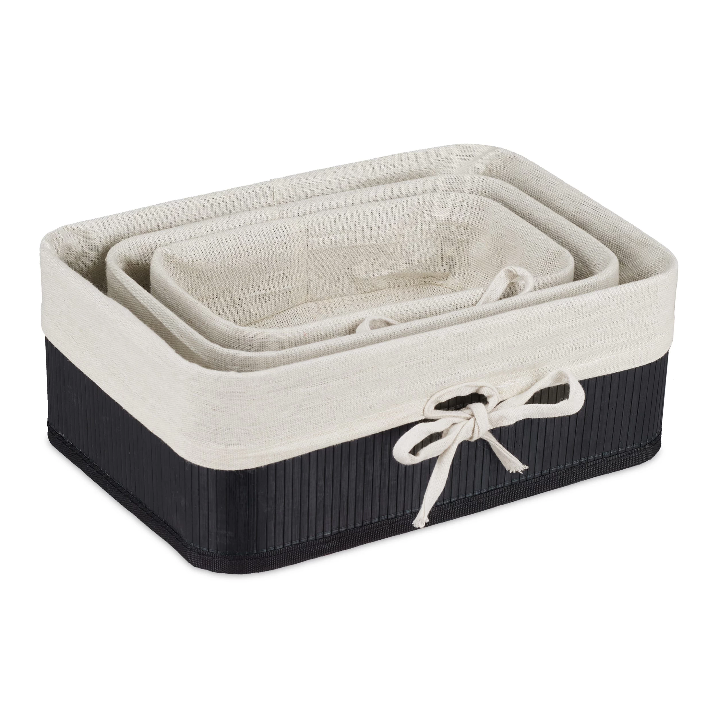 Diese Aufbewahrungskörbe im praktischen 12 tlg. Set bringen mehr Ordnung in Dein Zuhause. Durch die drei verschiedenen Größen lassen sich alle Kleinigkeiten des Alltags verstauen – ob Badartikel, Kinderspielzeug oder Näh- und Bastelutensilien. Dabei machen die dekorativen Regalkörbe nicht nur optisch was her, sondern überzeugen durch die Verarbeitung aus robustem Bambus und einer stabilen Bodenplatte. Das Korb Set bietet idealen Platz für kleine Dinge und passt in jeden Raum und jedes Regal.