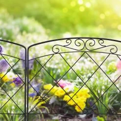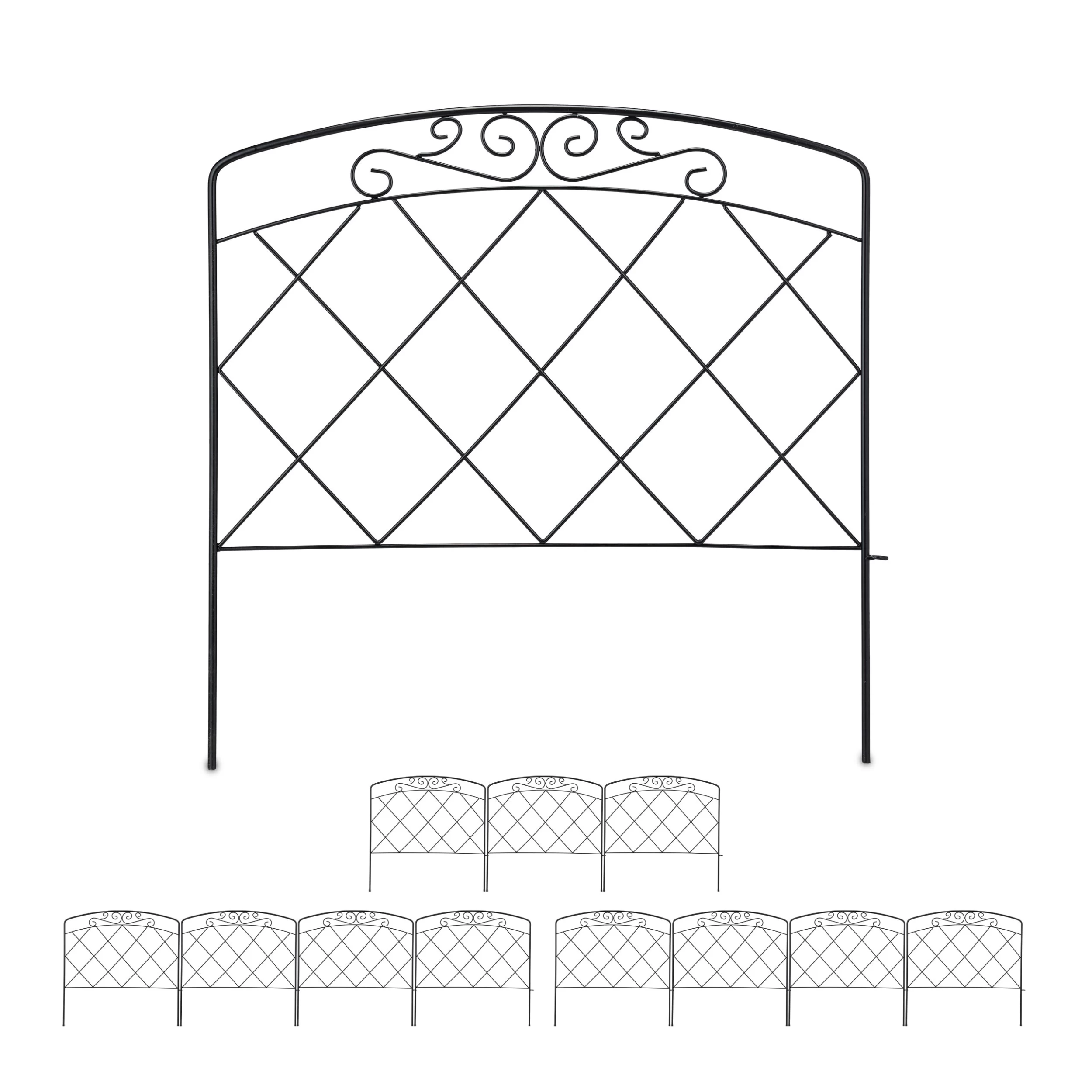 Mit diesem Steckzaun markieren Sie die Übergänge zwischen Beeten, Grünfläche, Wegen und Rabatten. Darüber hinaus bieten Sie Ihren Pflanzen ein dekoratives Rankgitter. Um die Beeteinfassung zu arrangieren, wird diese lediglich im Boden versenkt, wo die Erdspieße für optimalen Halt sorgen. Sie können die Elemente des Zierzauns je nach Bedarf dreieckig, viereckig, gerade oder als Ecke aneinanderreihen. Der Dekozaun sorgt dabei mit seinem antiken Design für einen Hingucker in Ihrem Garten.