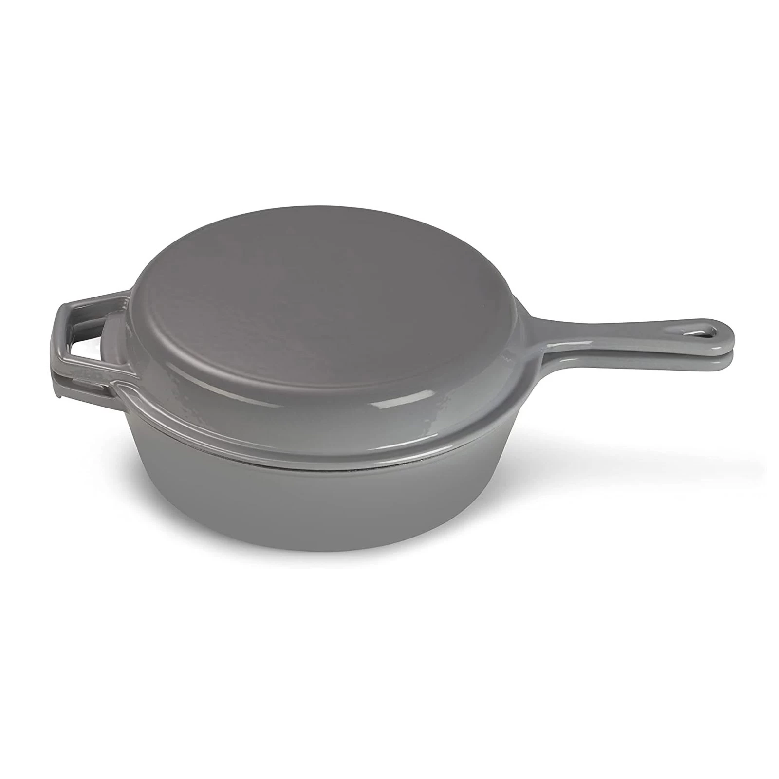 HOCHWERTIGES KOCH-EQUIPMENT – Der Kombi-Schmortopf ist aus robustem Gusseisen hergestellt. Dank der Versiegelung mit einer Emaille-Schicht lässt sich der Gusseisentopf mühelos reinigen und hält locker hohen Temperaturen stand.