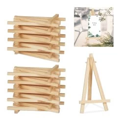 Mit der kleinen Staffelei im 20er Set können Sie Tische auf originelle Art und Weise dekorieren. Egal ob auf dem Schreibtisch oder bei Feierlichkeiten – die Holzstaffelei ist ein garantierter Hingucker. Die Mini Staffelei bietet vielfältige Einsatzmöglichkeiten. Präsentieren Sie Bilder, Fotos, Memos, Menükarten, Platzkarten oder Postkarten auf der Tischstaffelei. Der Kartenaufsteller ist leicht und trotzdem stabil.