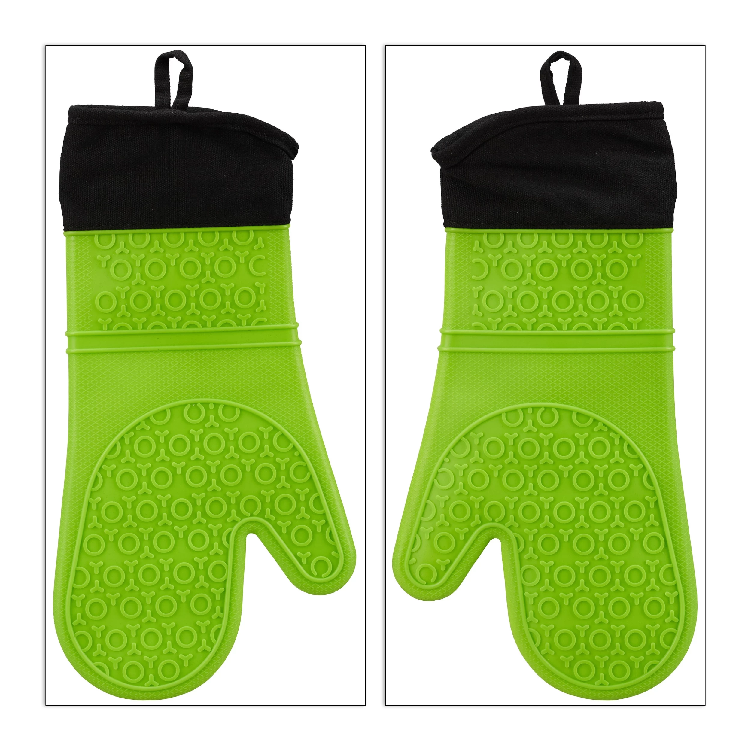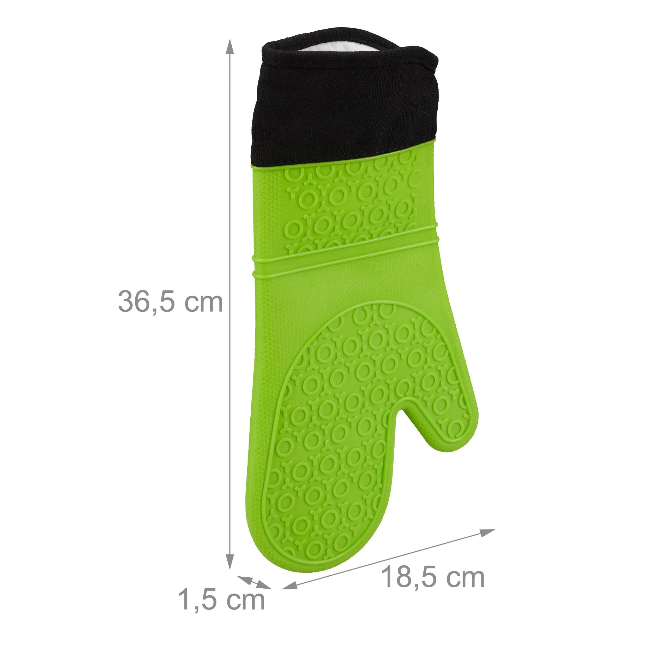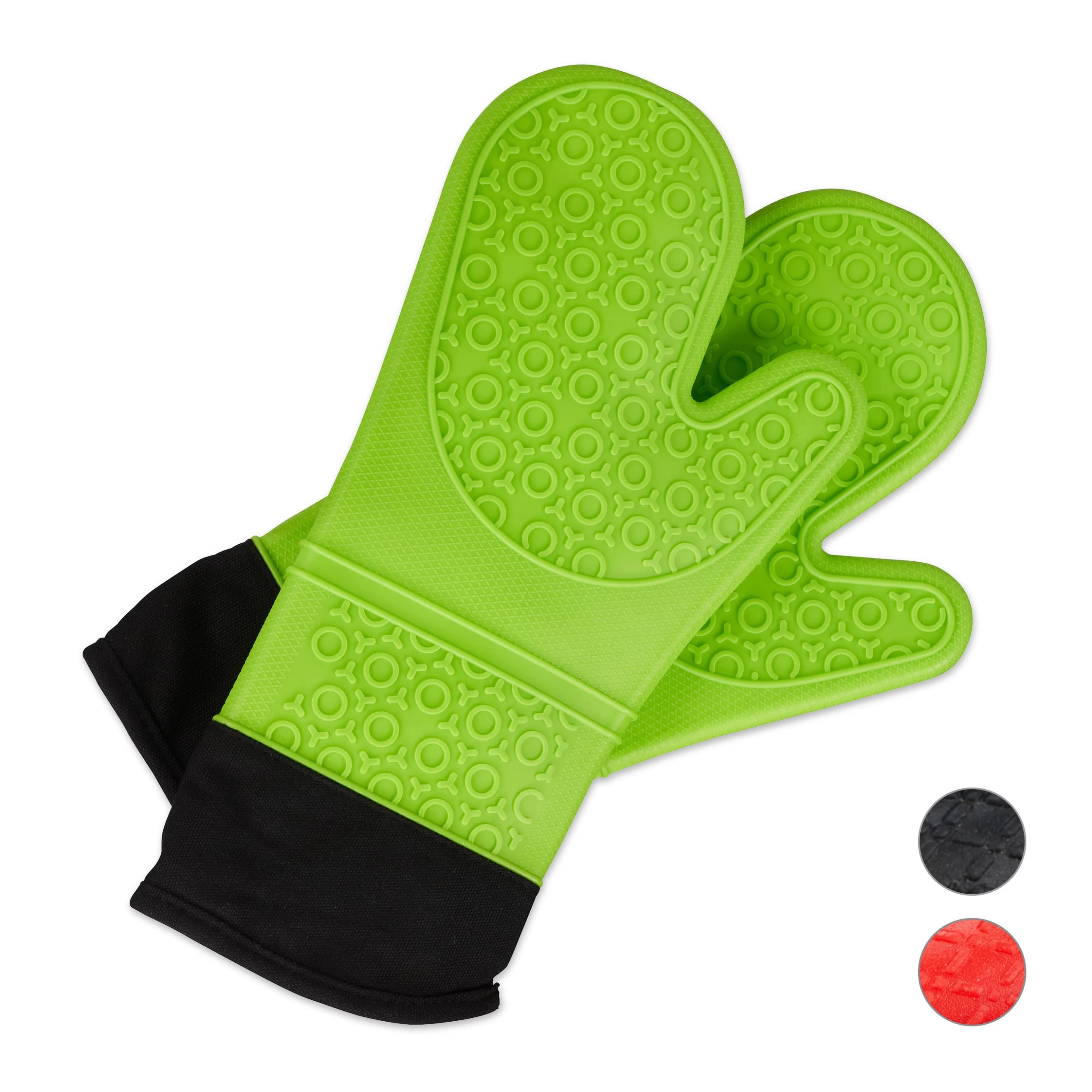 Ob Sie einen Spieß vom Grillrost nehmen, ein Blech aus dem Ofen holen oder einen heißen Topf von der Herdplatte heben möchten: Um sich die Finger zu verbrennen, reicht meist schon eine unachtsame Bewegung aus. Dank der Ofenhandschuhe aus hitzebeständigem Silikon kann Ihnen das nicht mehr passieren. Die extra langen Grillhandschuhe schützen sowohl Hände als auch Unterarme zuverlässig. Töpfe, Bleche oder Pfannen haben Sie immer fest im Griff, dafür sorgt die Anti-Rutsch Oberfläche der Handschuhe.