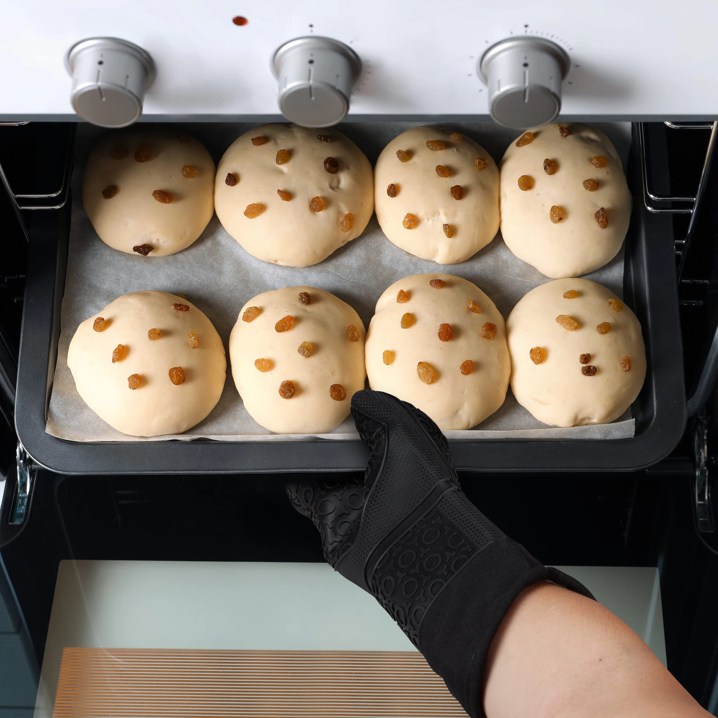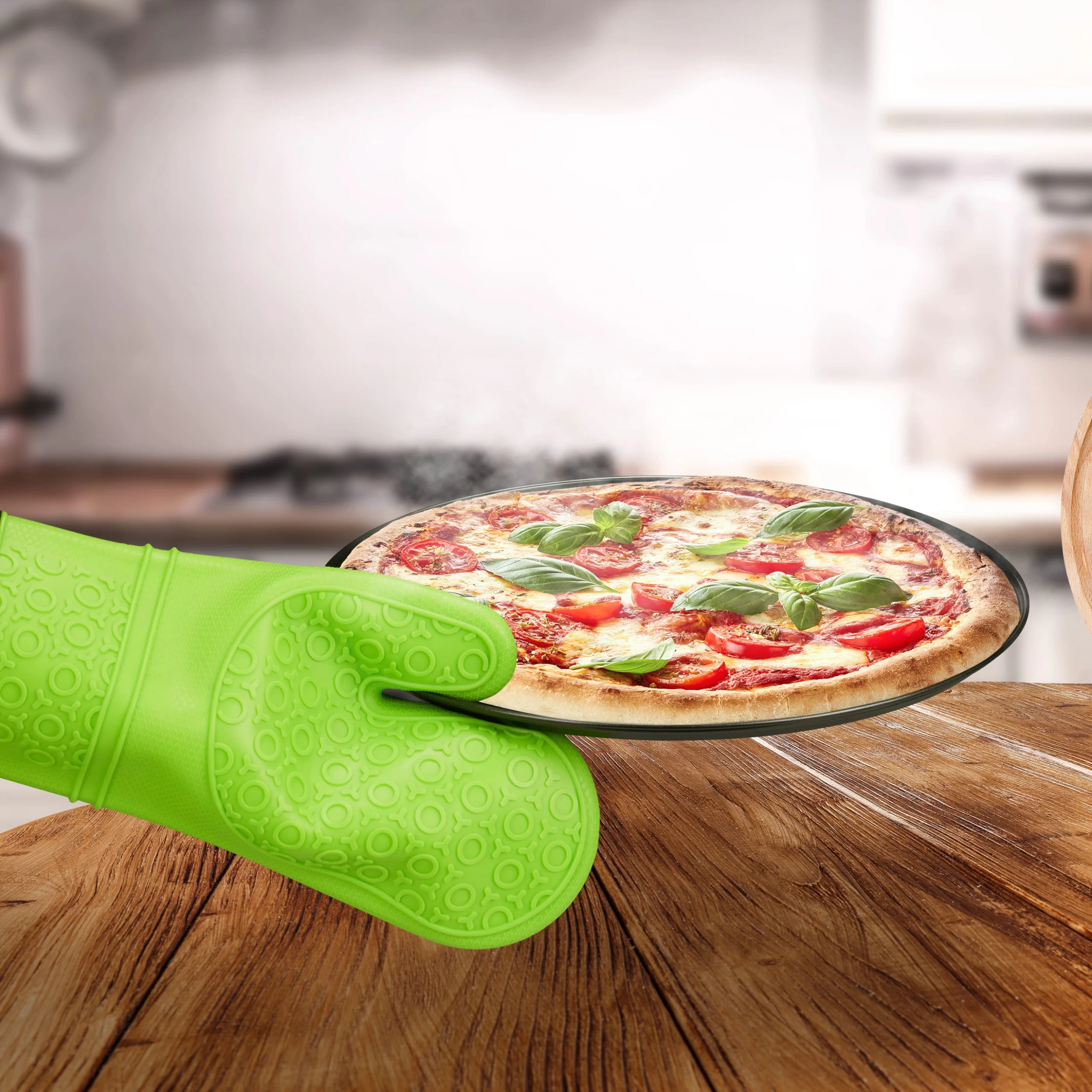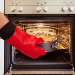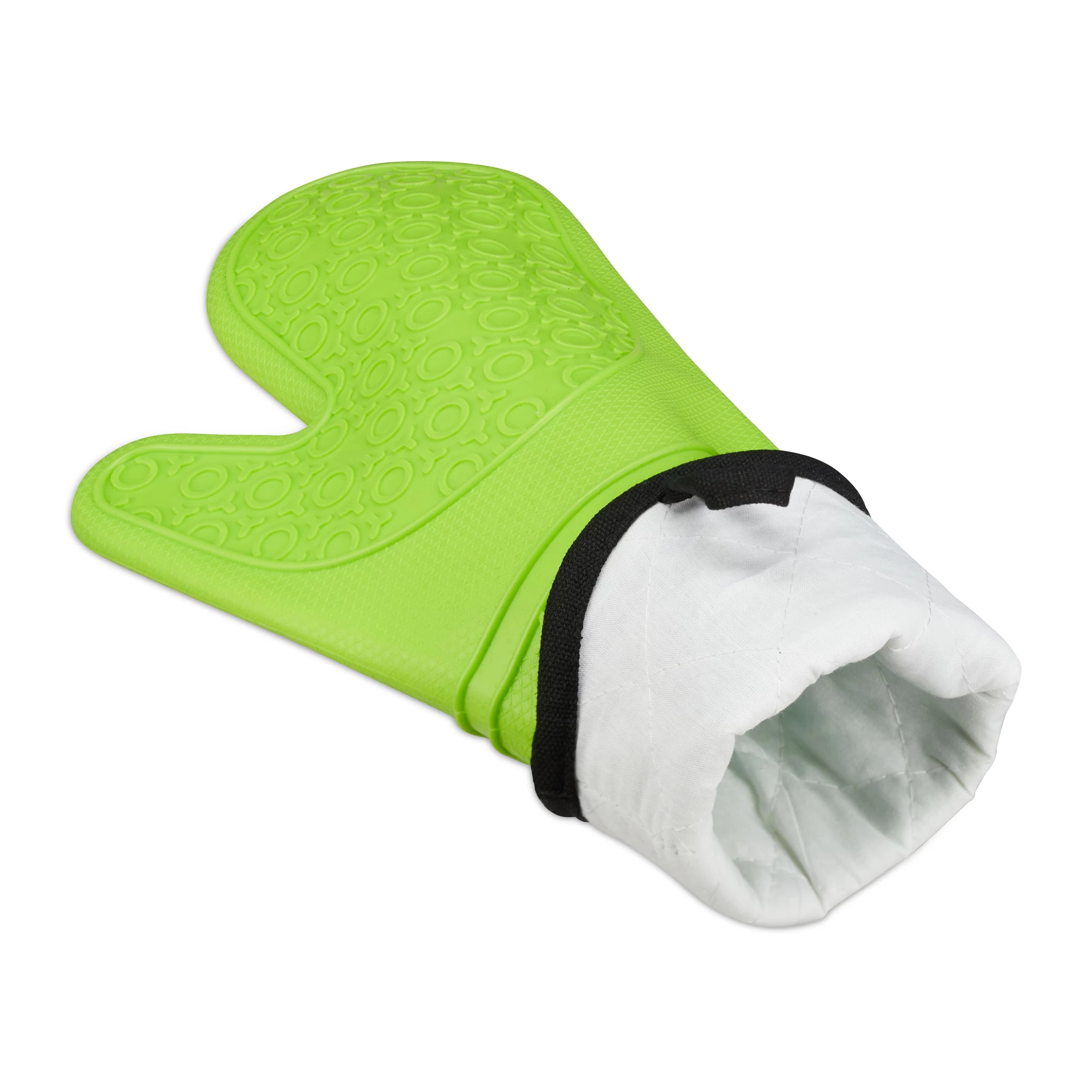Ob Sie einen Spieß vom Grillrost nehmen, ein Blech aus dem Ofen holen oder einen heißen Topf von der Herdplatte heben möchten: Um sich die Finger zu verbrennen, reicht meist schon eine unachtsame Bewegung aus. Dank der Ofenhandschuhe aus hitzebeständigem Silikon kann Ihnen das nicht mehr passieren. Die extra langen Grillhandschuhe schützen sowohl Hände als auch Unterarme zuverlässig. Töpfe, Bleche oder Pfannen haben Sie immer fest im Griff, dafür sorgt die Anti-Rutsch Oberfläche der Handschuhe.