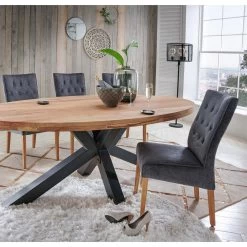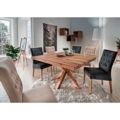 Der Esszimmerstuhl Frank ist ein echter Hingucker und bietet zudem einen sehr hohen Sitzkomfort. Die komfortabel gepolsterte Sitzfläche und die gepolsterte Rückenlehne geben dem Stuhl neben den von uns als hochwertigem Sitzkomfort getesteten Esszimmerstuhl zudem eine edle Optik. Die Stuhlbeine sind aus massivem Eichenholz in der Farbe Bianco.