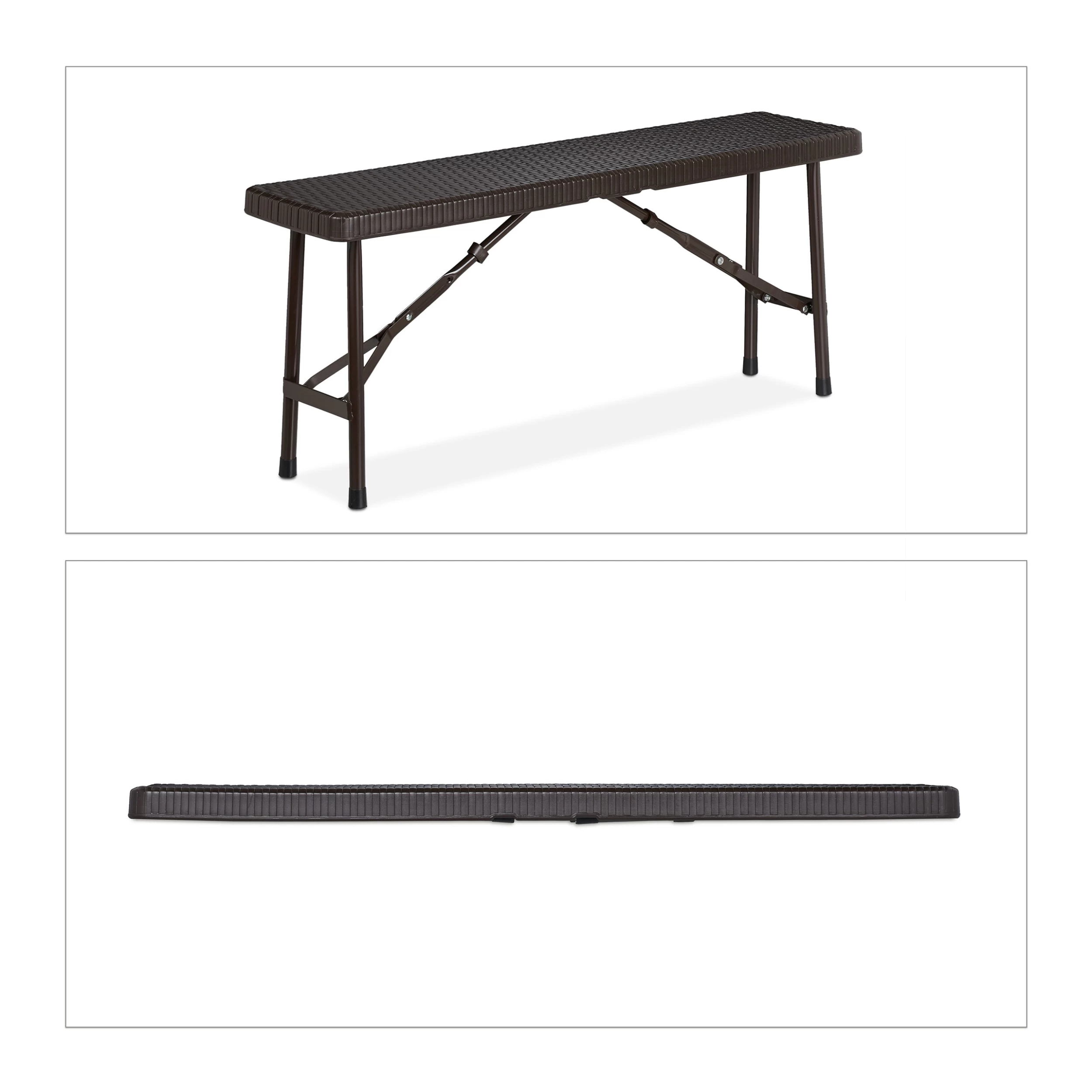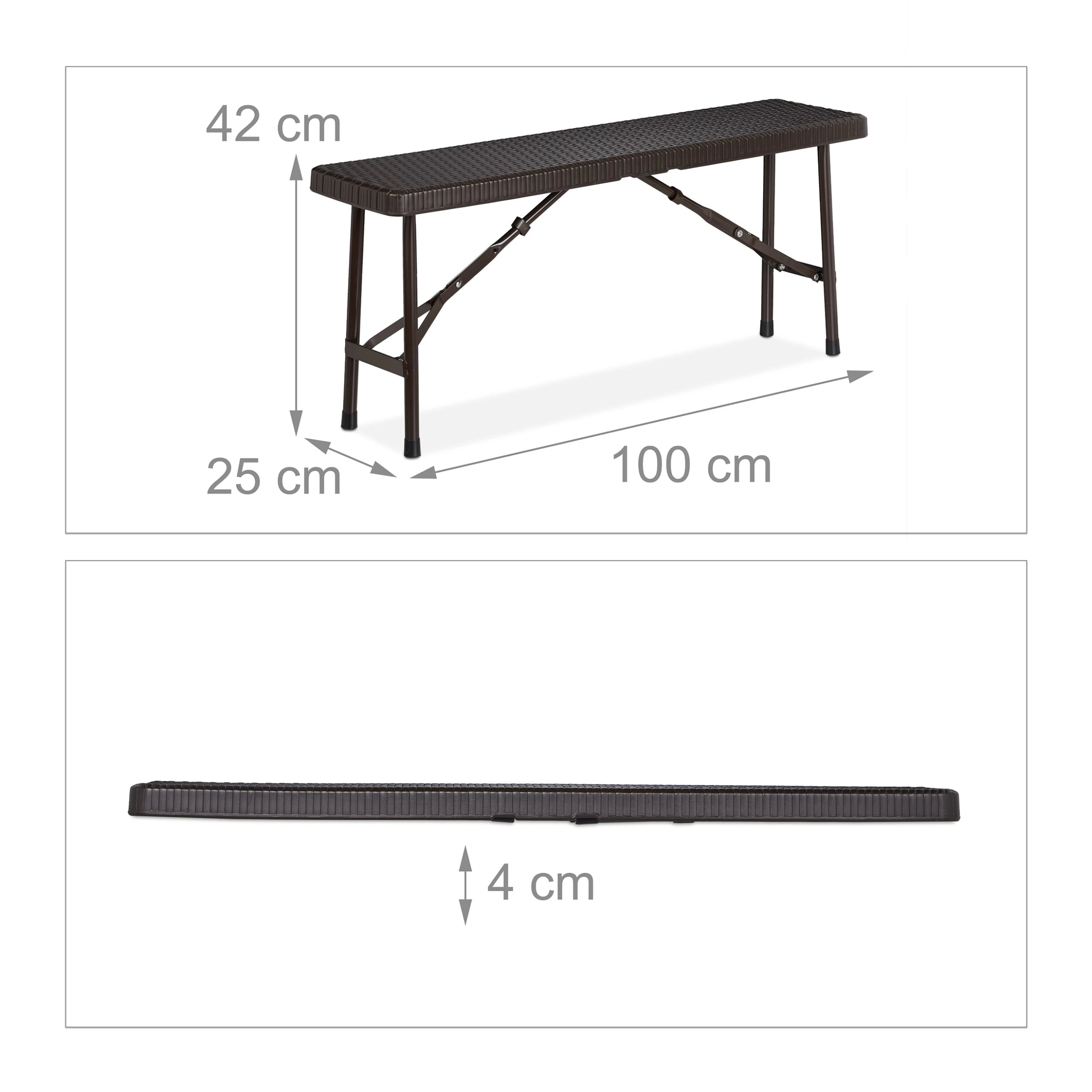 Diese Bierbank im Doppelpack ist ideal als flexible Sitzgelegenheit bei Grillpartys auf dem Balkon oder im Garten sowie bei Campingausflügen. Die Klappbank ist mit wenigen Handgriffen aufgestellt und bei Bedarf einfach platzsparend zusammengeklappt. Dabei überzeugt die Faltbank sowohl draußen als auch im Festzelt mit ihrer modernen Rattan-Optik in Braun. Die schmale Breite von 1 Meter ist auch perfekt für kleinere Räumlichkeiten.