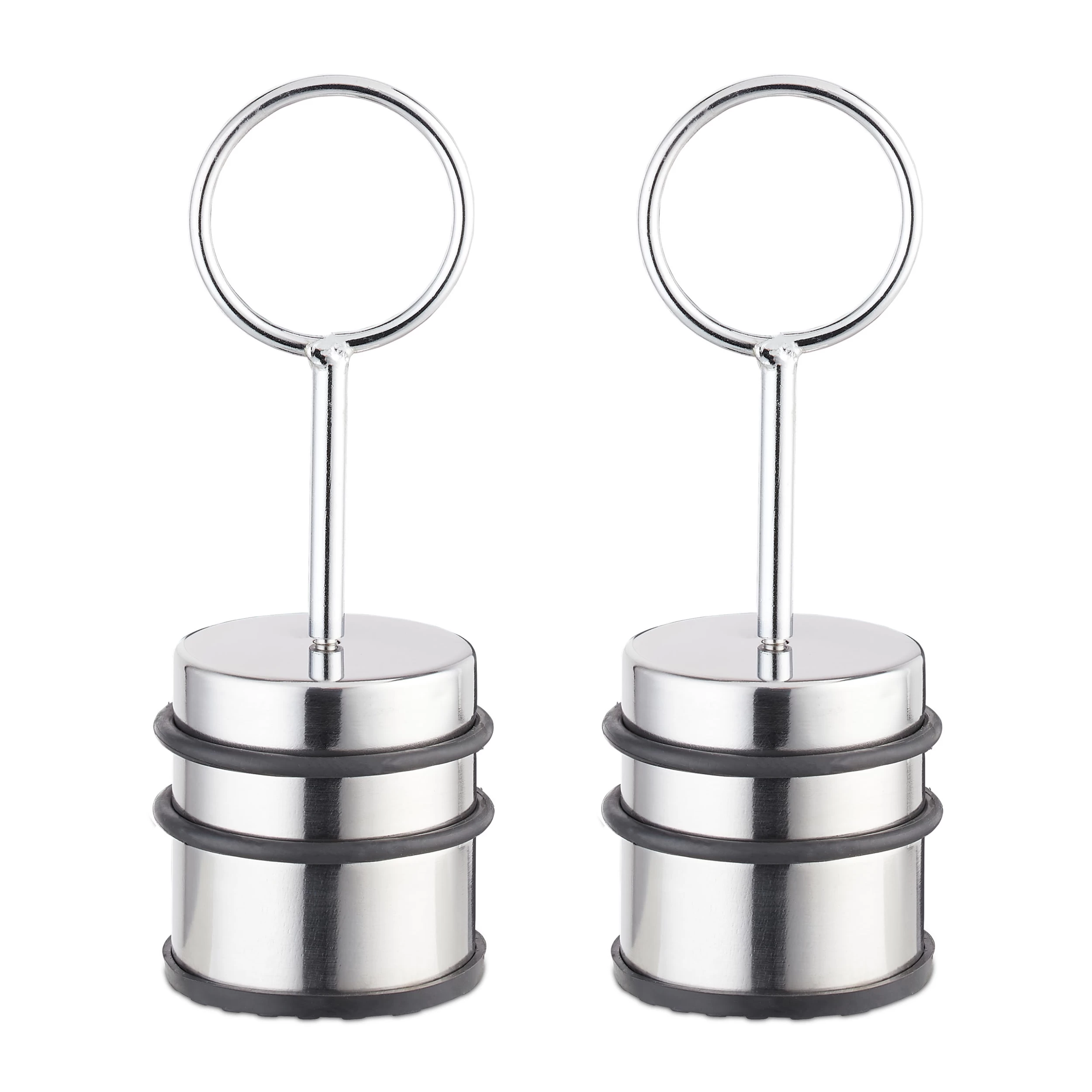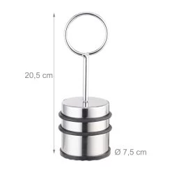 Der Türstopper aus Edelstahl ist der ideale Helfer für zu Hause. Er hindert Fenster und Türen am unbeabsichtigten Zuschlagen durch Zugluft oder Ähnliches. Der praktische Griff hilft beim freien Positionieren in der ganzen Wohnung. Durch die massive und schwere Fertigung hat der Stopper einen festen Stand. Die gummierte Unterseite behindert das Verrutschen auf glatten Bodenbelägen. Zusätzlich verhindern zwei Gummiringe unschöne Abdrücke und Kratzer auf Möbeln, Türen oder Fenster.