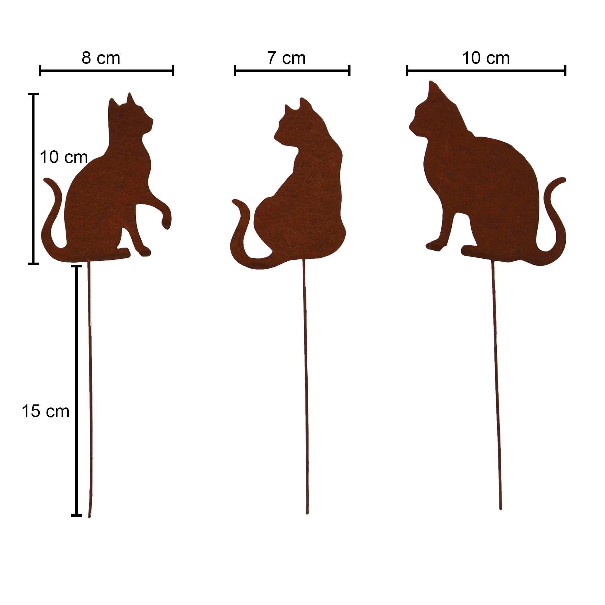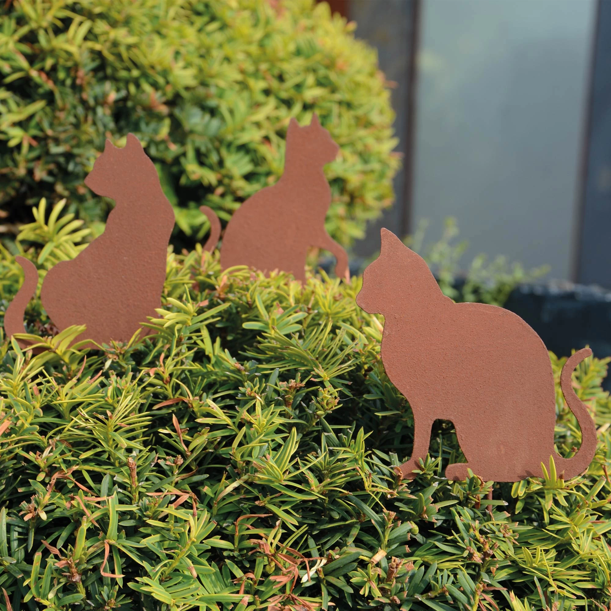 UNUS Garden Katzen Gartenstecker 3er Set, Gartendeko Rostoptik, Roststecker aus Edelrost Metall, Rost Deko für Garten Terrasse Balkon