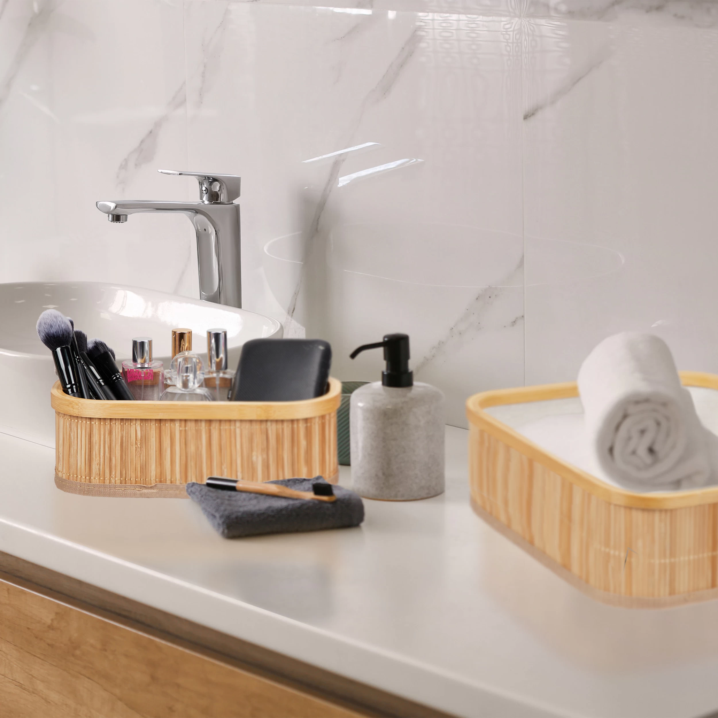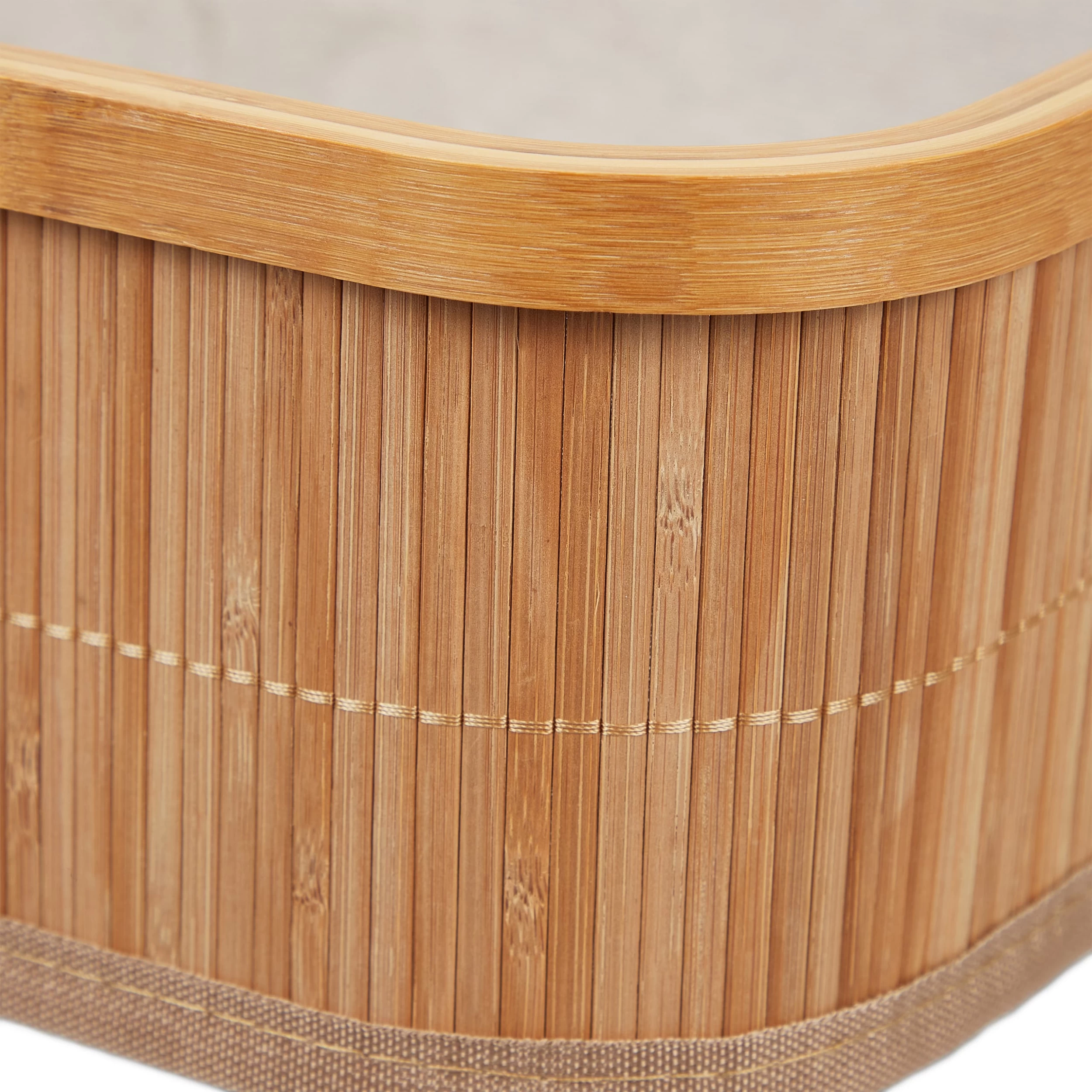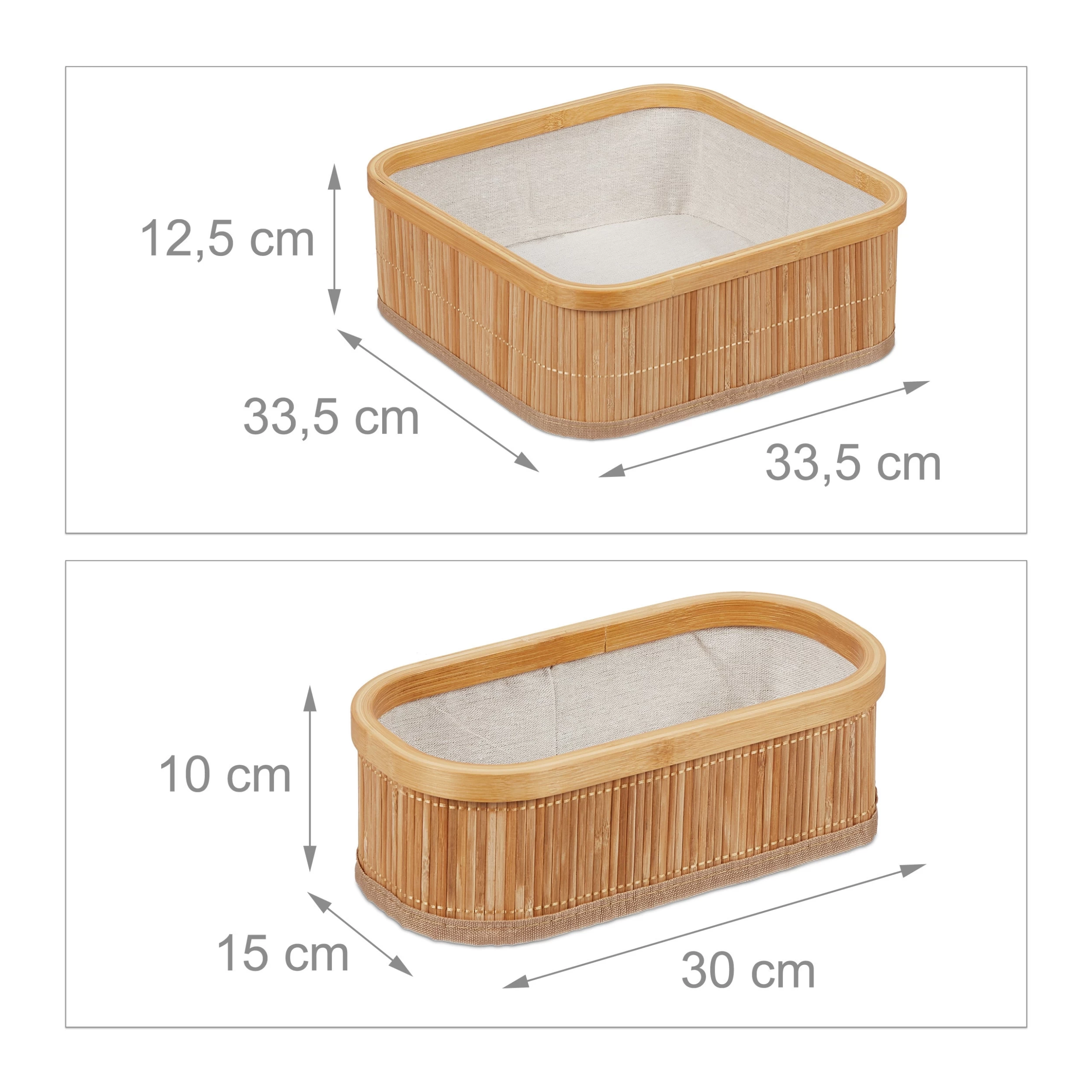 – Zum Verstauen von Kosmetik, Accessoires, Spielzeug uvm.- Natürliche Optik mit Bambus und hellem Polyester als Einlage