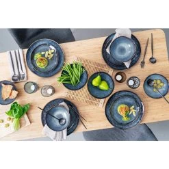 Auf jedem Becher variiert sowohl die Farbdeckung als auch die Maserung. Dadurch ist jedes Einzelteil ein Unikat, welches Sie sich nach Hause holen können. Die glänzende Glasur sorgt für einen Hau Eleganz und wertet die Teller zusätzlich auf.
