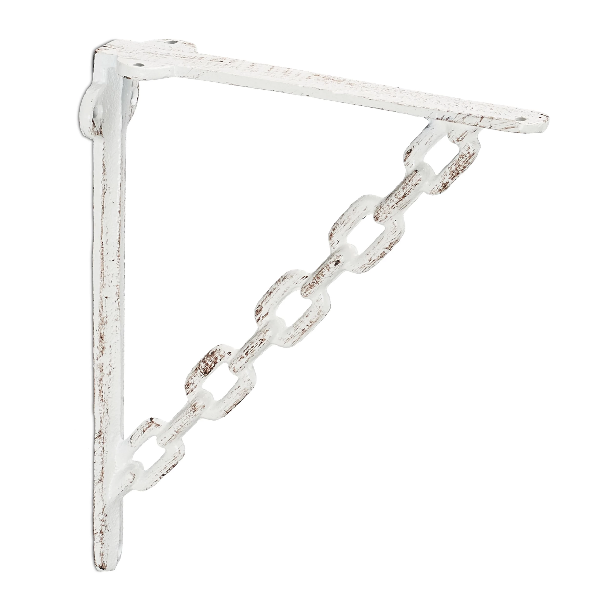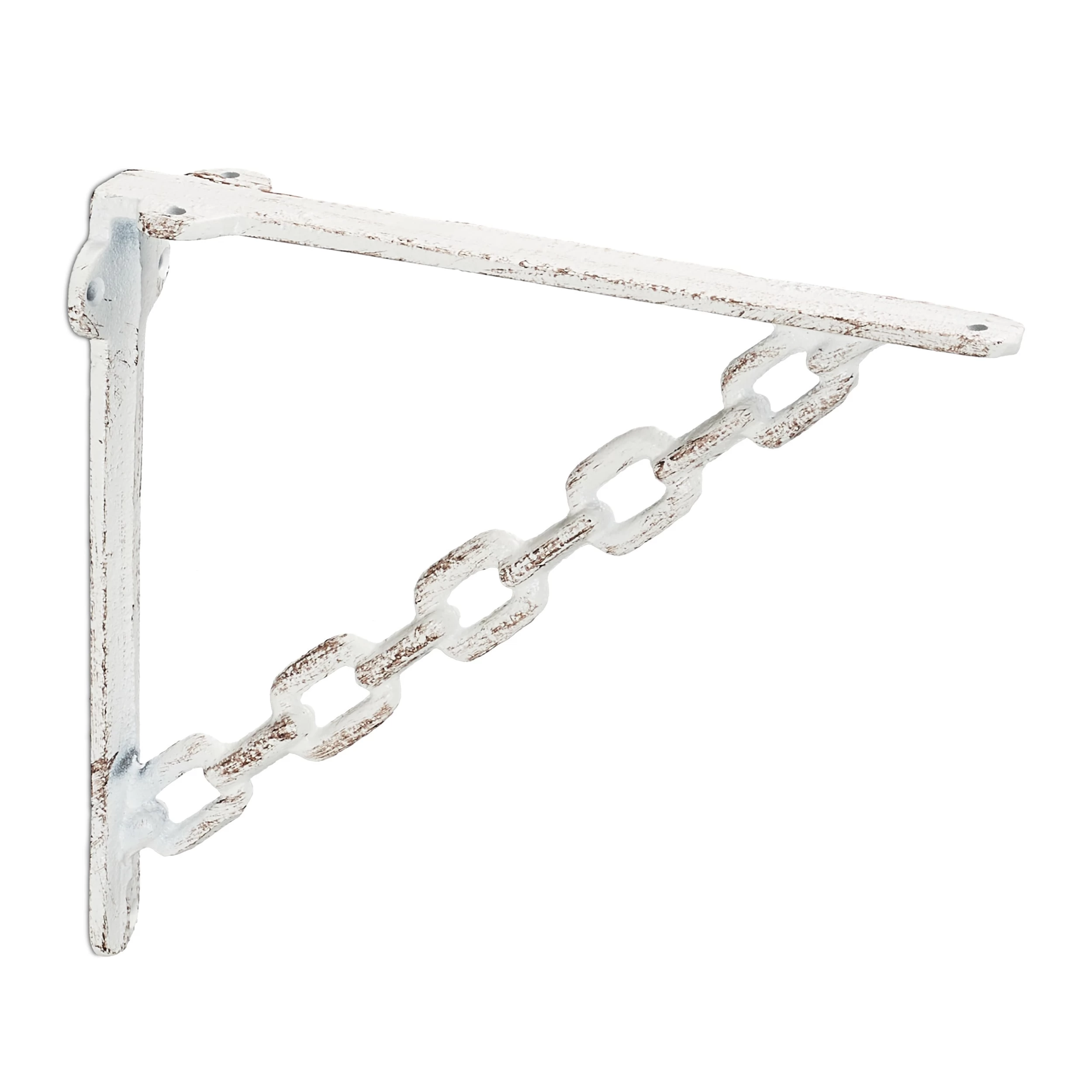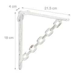 Sie mögen Regale, die nicht nur pflichtschuldig ihren Job erfüllen, sondern darüber hinaus Ihren Wänden ganz besondere Akzente verleihen? Dann sind die beiden gusseisernen Regalhalterungen im rustikalen Shabby Chic Look genau die richtige Wahl. Für zusätzliche Stabilität und Gesprächsstoff sorgt die Strebe, die die lange mit der kurzen Seite verbindet. Sie ist im ausgefallenen Ketten-Design gestaltet, das für einen sehenswerten Industrial Stil sorgt und garantiert die Blicke auf sich zieht.