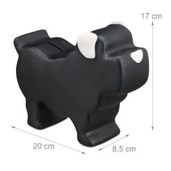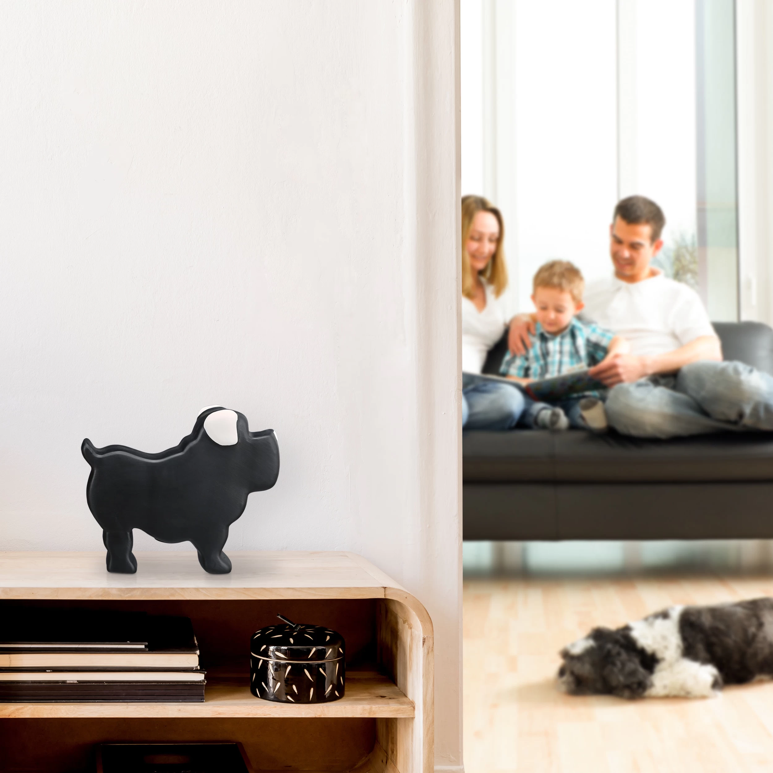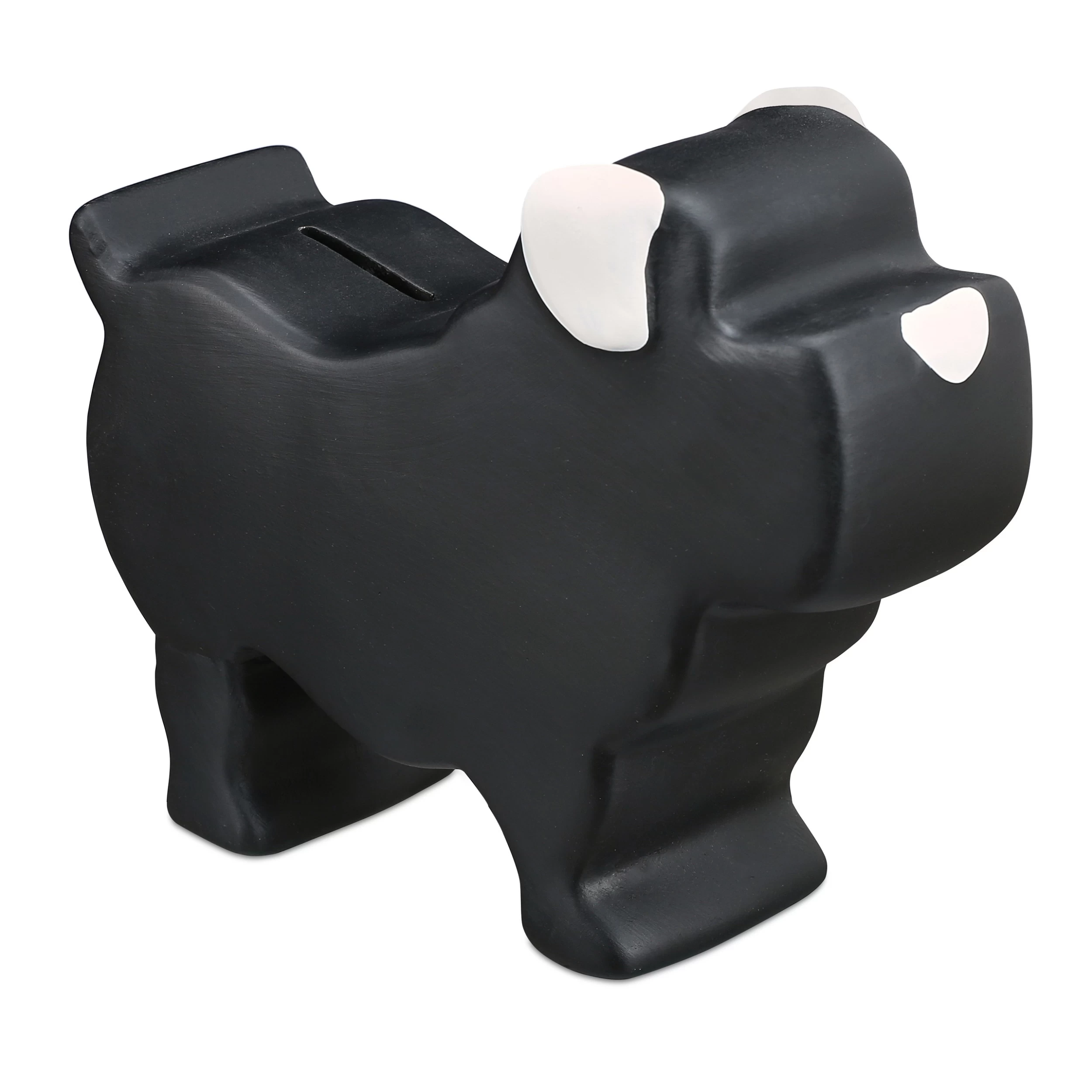 – Schwarzer Hund mit weißen Details als originelles Sparschwein