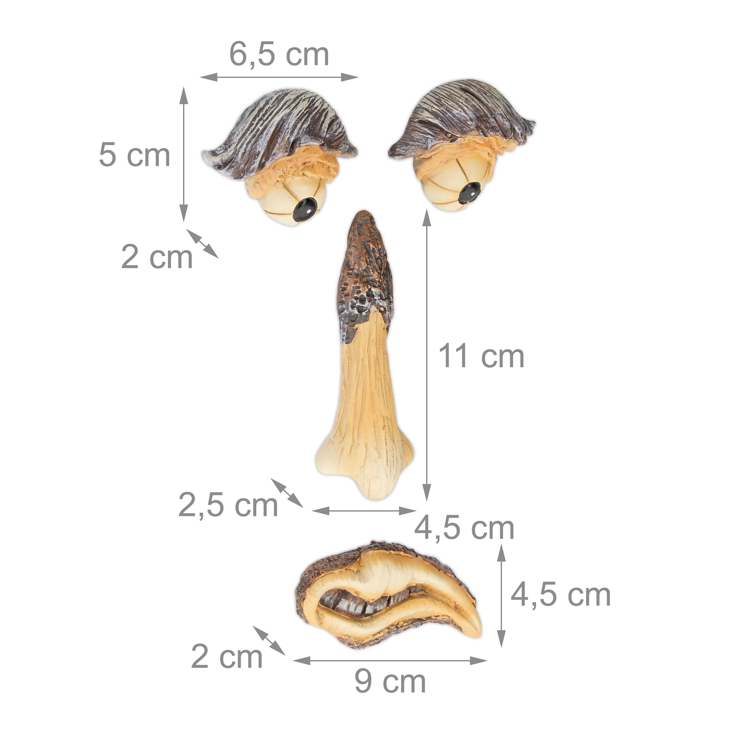 – Maße je Auge H x B x T: ca. 2 x 6,5 x 5 cm- Maße Nase H x B x T: ca. 2,5 x 4,5 x 11 cm