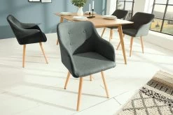 Dieser Armlehnstuhl ist ein echter Designklassiker. Er besticht durch ein ausgezeichnetes skandinavisches Design, das sich in jedes Interieur gekonnt eingliedert. Gleichzeitig überzeugt er mit seiner bequemen Sitzschale, welche mit hochwertigem Strukturstoff bezogen ist, und eine klare Linienführung aufzeigt. So sorgt der Stuhl für ein stilvolles, aber auch gleichzeitig modernes und cooles Wohnambiente. Der Sitz bietet mit seinem Polster und seinen Armlehnen eine besonders hohe Gemütlichkeit und gewährleistet ein langes und bequemes Sitzen.