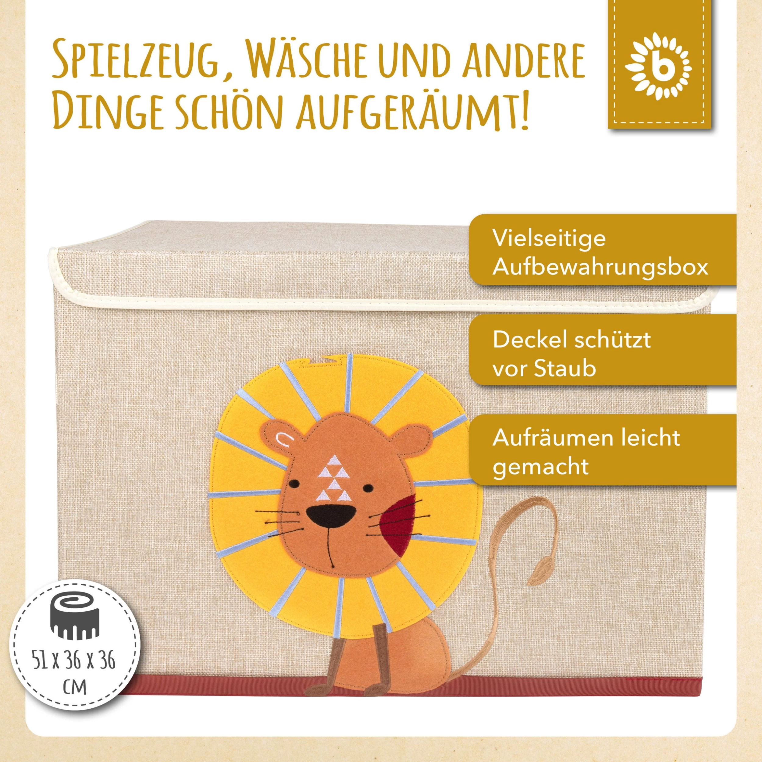– Perfekt für Kinder: Die faltbare und leicht verstaubare Aufbewahrungskiste mit klappbarem Deckel ist ideal zur Spielzeug Aufbewahrung. Das süße Löwenmotiv regt zudem die kindliche Fantasie an