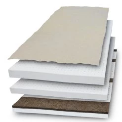 Sandwich mit Kokos-Latex-Zonen oben, darunter 4cm Kautschuk, 7,5 cm Kautschuk fest, 7,5 cm Kautschuk weich