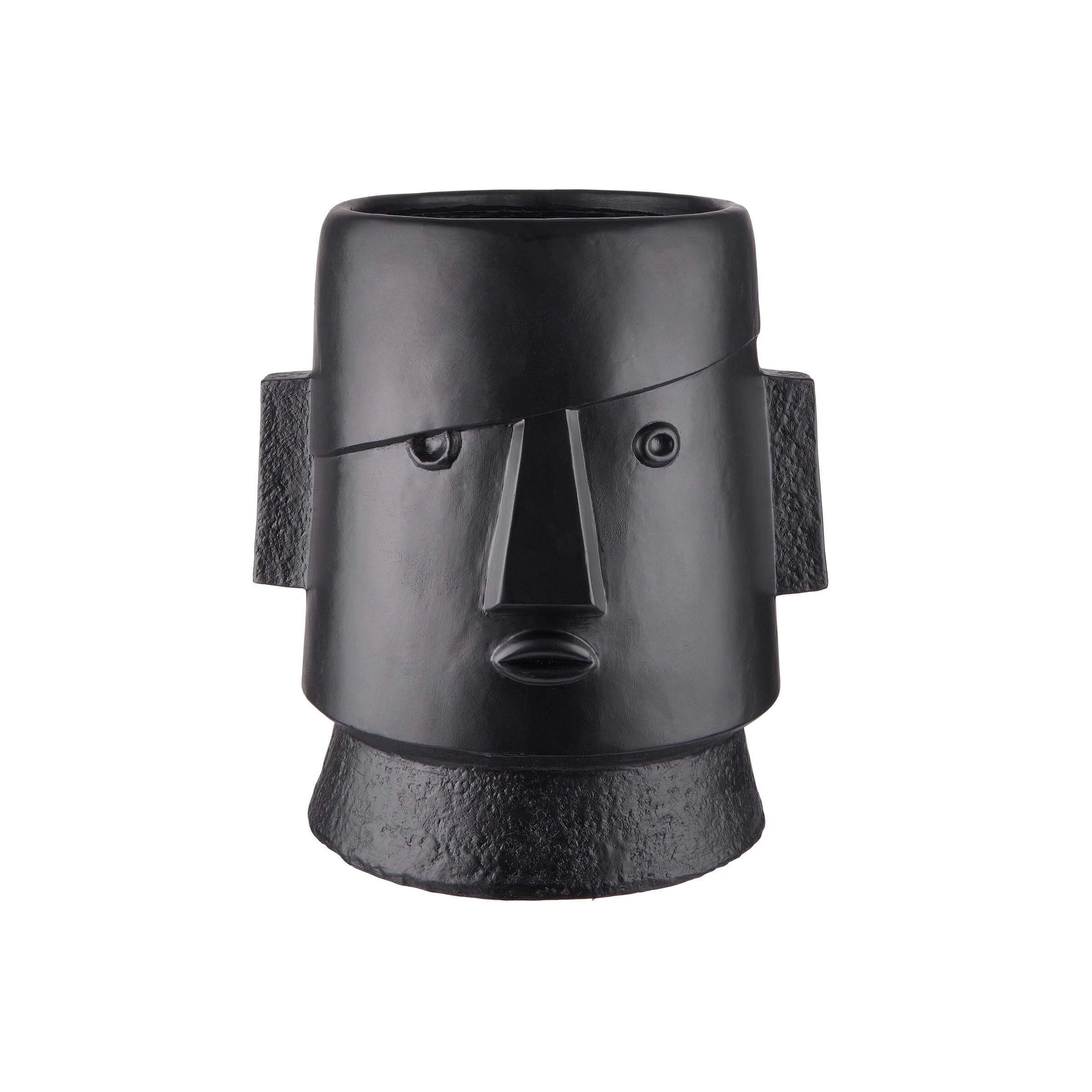 Mit südpazifischen Grüßen: Das Design des schwarzen Moai Blumentopf Osterinsel ist von den berühmten polynesischen Steinstatuen inspiriert. Da macht ihn zu einem kleinen Kunststück und außergewöhnlichen Blickfang. Aus wetterbeständigem Magnesia gefertigt, ist der Blumentopf auch für Outdoor geeignet – dann sollte allerdings ein Loch in den Topf gebohrt werden, damit Regen- und Gießwasser abfließen kann.