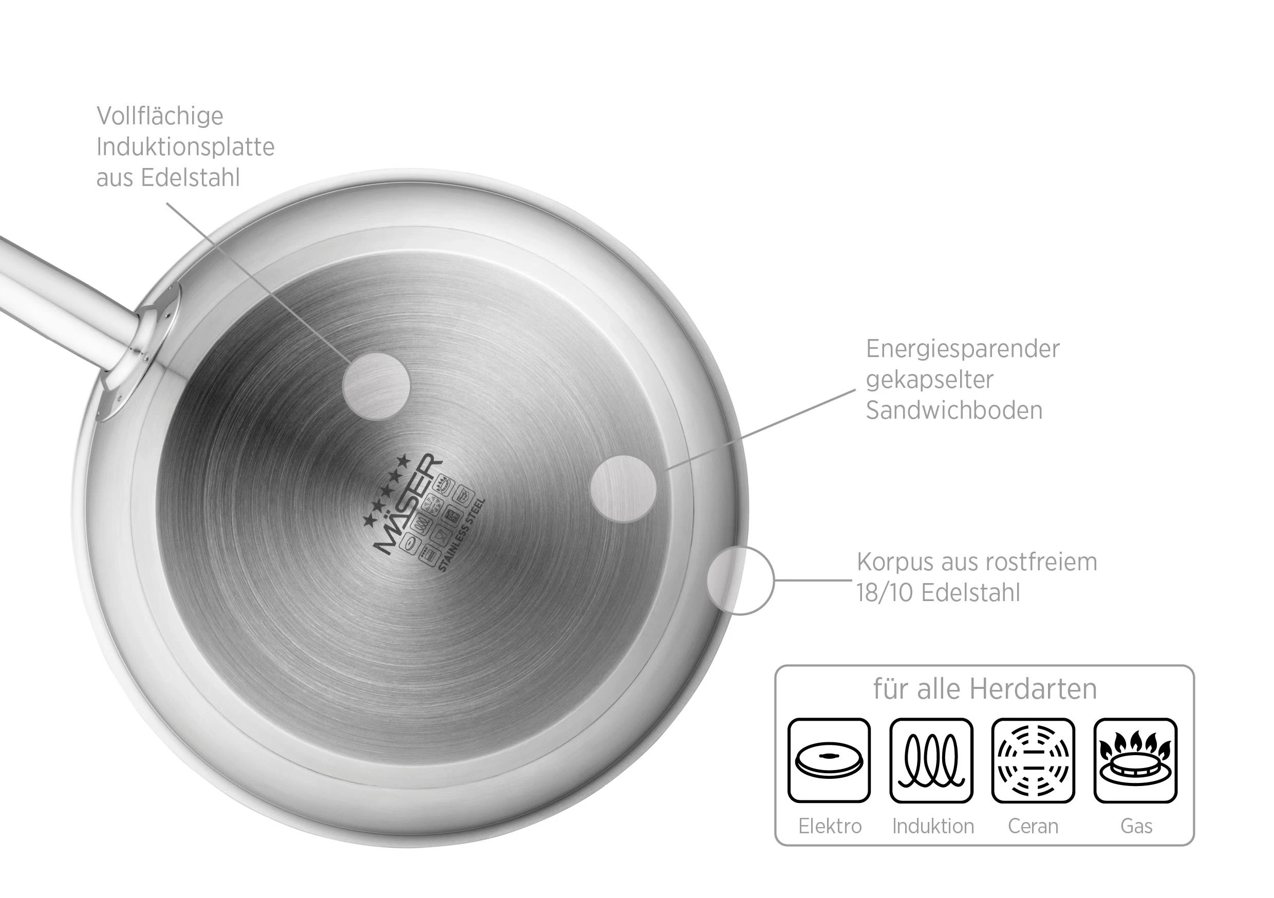 – Optimaler Hitzeverteilung auf allen Herdarten