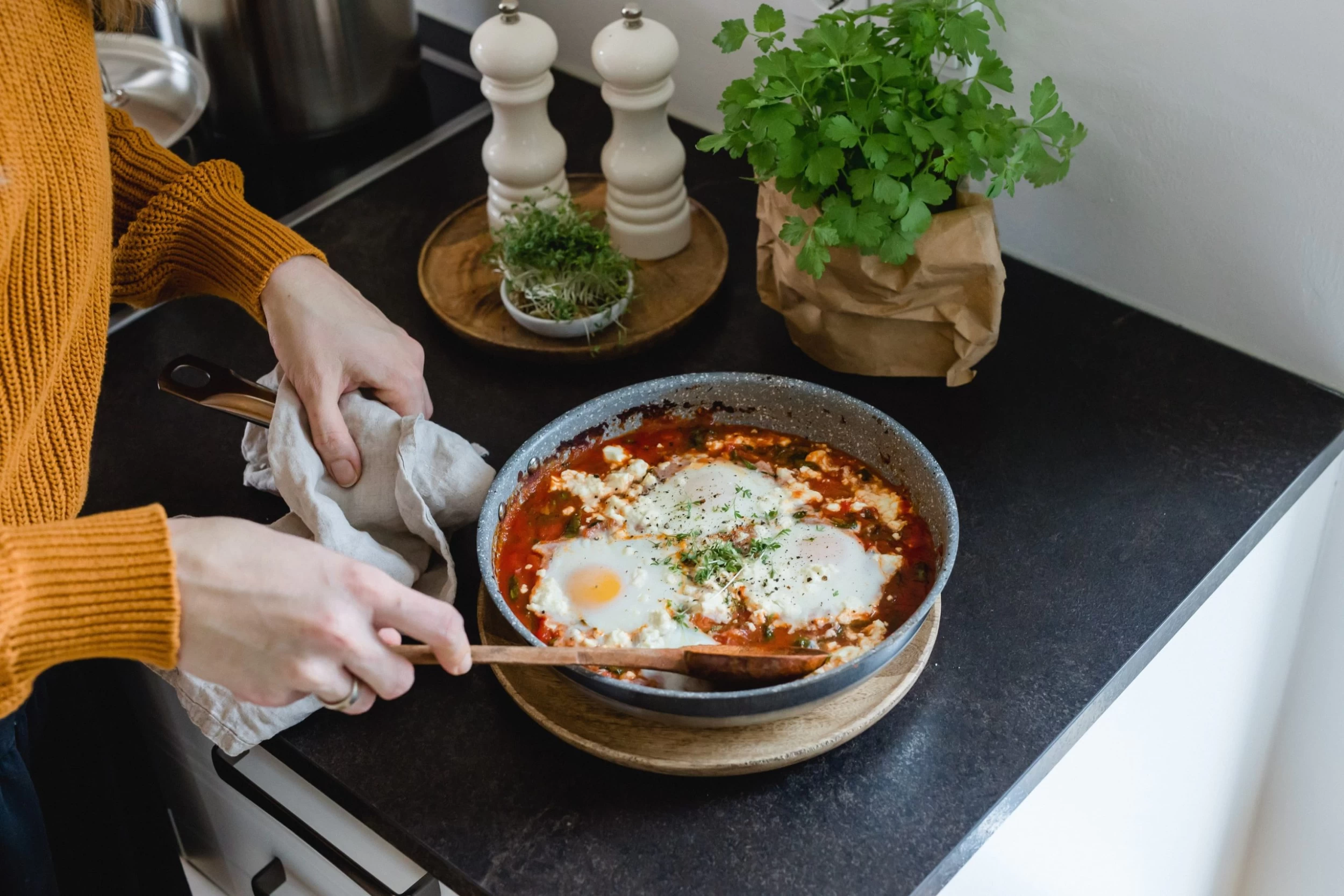 – Rostfreie, ofenfeste Edelstahlpfanne in Hochraum-Ausführung