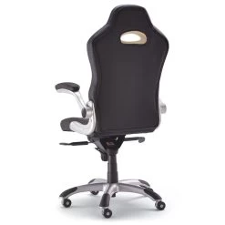 Ein Bürostuhl der Extraklasse in edlem Sportsitzdesign. Lieferung erfolgt zerlegt mit Aufbauanleitung. Sitzhöhe verstellbar, feststellbare Wippfunktion, Armlehnen hochklappbar. Max. Belastbarkeit: 95 kg. Maße: ca. B66 x T66 x H129 cm, Sitzhöhe: 45 bis 53 cm, Sitzfläche: 46 x 43 cm, Rückenlehnenhöhe: 73 cm, Armlehnenhöhe: 23 cm, Fußkreuzdurchmesser: 67 cm. Material: Lederimitat, Rahmen aus hochwertigem Metall.