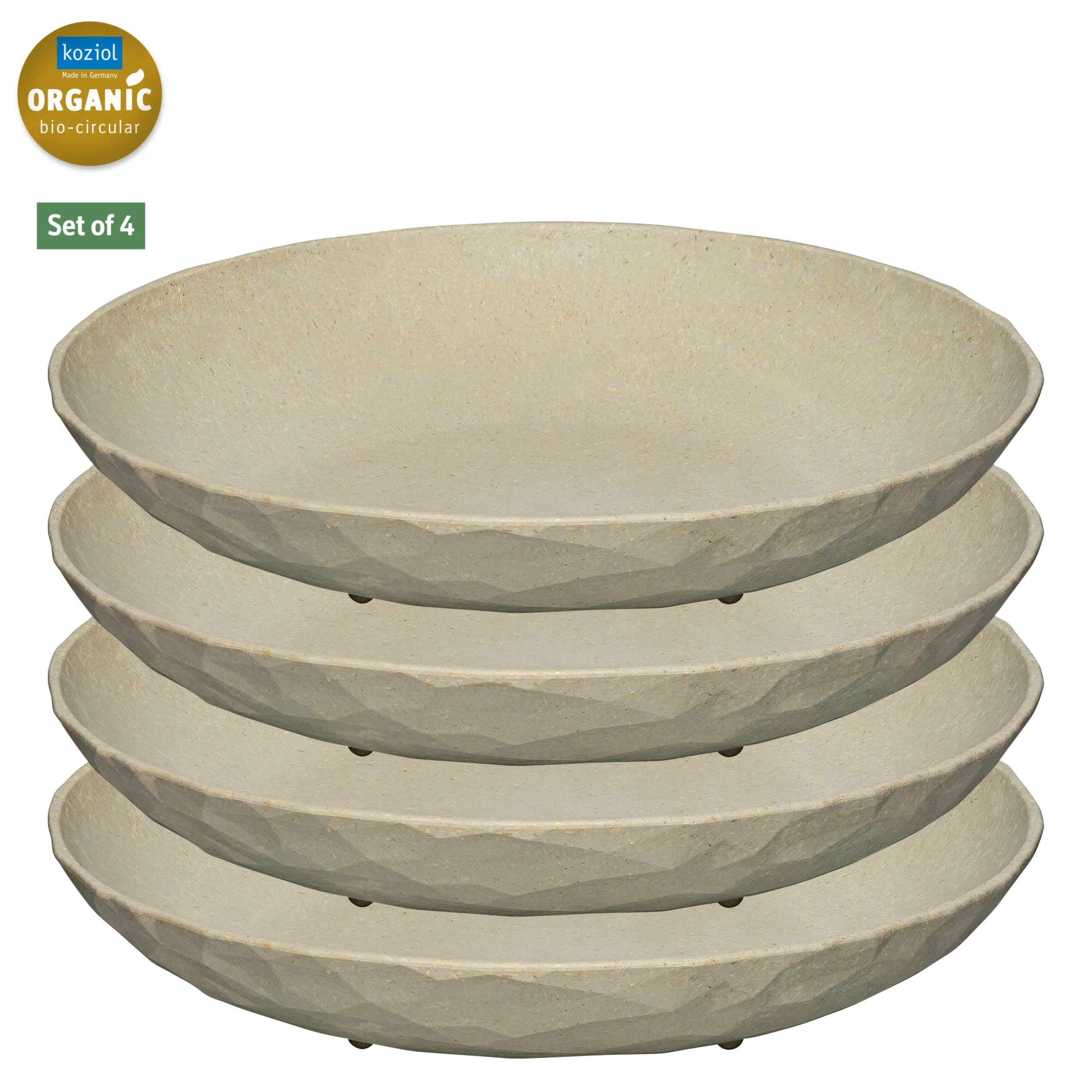 Der universelle Teller für Gartenfeste, Picknicks oder Glamping und alle Anlässe, die vorzugsweise draußen stattfinden. Die Außenseite trägt eine lebendige Facettenstruktur und seine solide Qualität und breite Standfläche vermitteln jederzeit und überall das gute Gefühl hochwertigen Dinierens. Ideal für alle Outdoor-Aktivitäten, bei denen man auf stilvolles Geschirr keineswegs verzichten möchte. 4er-Set •hochaktuelles Facettendesign•schwere Qualität•sicherer Stand •stapelbar •spülmaschinengeeignet •ideales Outdoor-Produkt•100% CO2-neutral ORGANIC BIO-CIRCULAR
