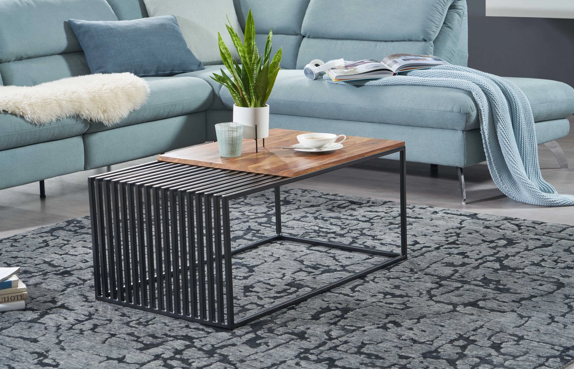 Design Rechteckiger Couchtisch in modernem Industrial-Design Toller Materialmix aus Massivholz und Metall Elegante und ausdrucksstarke Holzmaserung Gitterfläche auf der Oberseite und einer Außenseite Abmessungen Breite: 90 cm Tiefe: 55 cm Höhe: 40 cm Tischplatte (BxT): 59 x 55 cm Tischplattenstärke: 1,5 cm Materialstärke Gestell: 1,5 cm Farbe Tischplatte: Dunkelbraun Gestell: Schwarz Besonderheiten Jeder Tisch wurde in liebevoller Handarbeit gefertigt und ist somit ein absolutes Unikat Da es sich um Handarbeit und um ein Naturprodukt handelt, kann es zu Farbabweichungen oder Unebenheiten kommen Holzschutz bietet die Schutzlackversiegelung der Oberflächen Sicherer Stand dank des robusten Metallgestells Anti-Rutsch-Noppen an den Beinen schützen Ihren Fußboden und das Metall vor unschönen Kratzern Die Maximalbelastbarkeit liegt bei ca. 30 kg Material Tischplatte: Sheesham Massivholz, mit Klarlack beschichtet Gestell: pulverbeschichtetes Eisen Lieferumfang Ein Couchtisch ohne Dekoration Montage Lieferzustand: komplett montiert und sicher verpackt Pflegehinweise Die Oberfläche mit einem lauwarm angefeuchteten Baumwolltuch reinigen. Keine Scheuermittel, scharfe Reinigungsmittel oder tropfnasse Tücher verwenden.