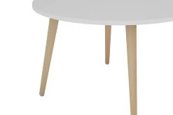 Der Wohnzimmertisch Lasse überzeugt durch sein skandinavisches Design, welches sich wunderbar in viele Einrichtungsstile integrieren lässt. Die Tischplatte in Anthrazit oder Weiß ist mit einer Melaminbeschichtung ausgestattet, was diese besonders robust und widerstandsfähig macht. Die runde Form verleiht dem Tisch dabei eine ganz besondere Optik. Um die Stabilität zu gewährleisten, sind die Beine in massiver Buche gefertigt und in natürlichem Farbton gehalten. So entsteht ein wohnliches und gemütliches Design.