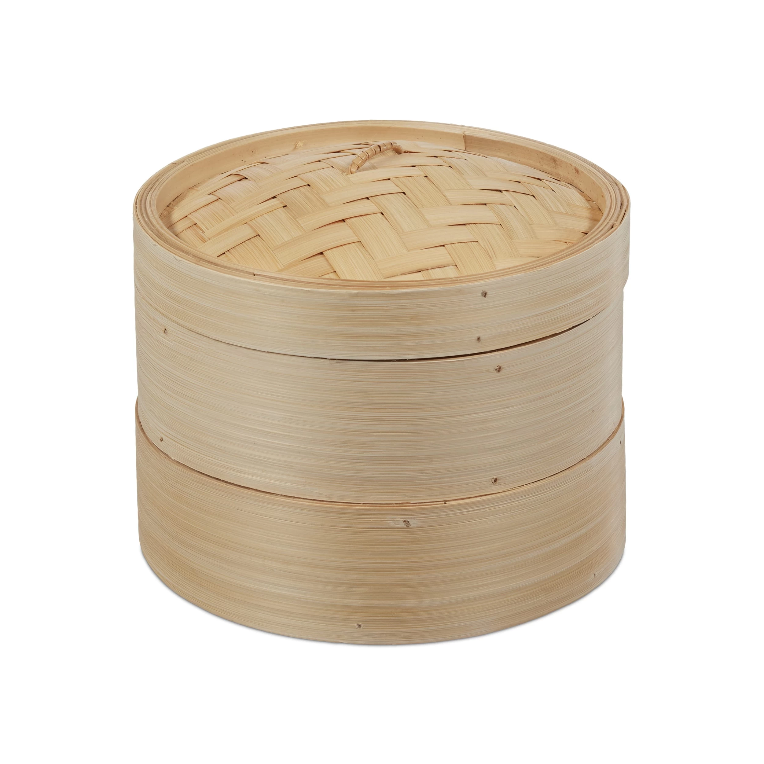 Mit dem klassischen Bambusdämpfer bereiten Sie auf traditionelle Weise Reis für asiatische Gerichte zu. Das Dämpf-Set aus geflochtenem Bambus besteht aus 2 Dampfkörben und einem Deckel. Stellen Sie den Dämpfer in einen Wok oder auf einen Topf mit kochendem Wasser. Der Dampf zieht durch die Schlitze im Boden und gart jede Sorte Reis auf schonende Weise. Nutzen Sie die Behälter auch zum Zubereiten von Gemüse oder Fisch. Mit dem Bambus Steamer zaubern Sie gesunde, leckere Gerichte auf den Teller.