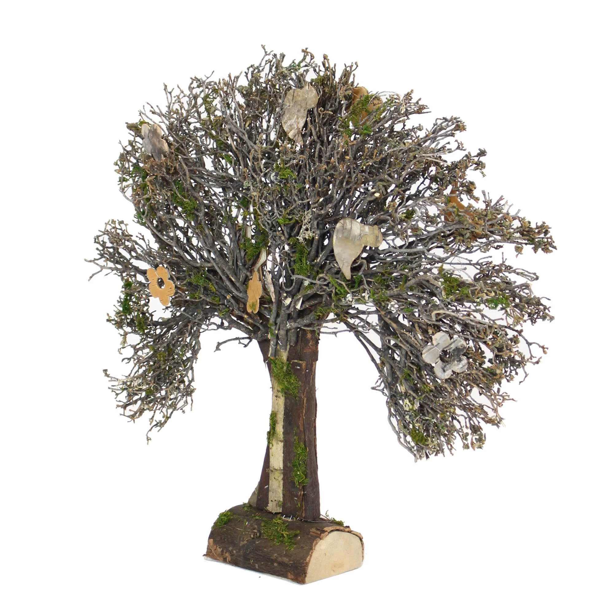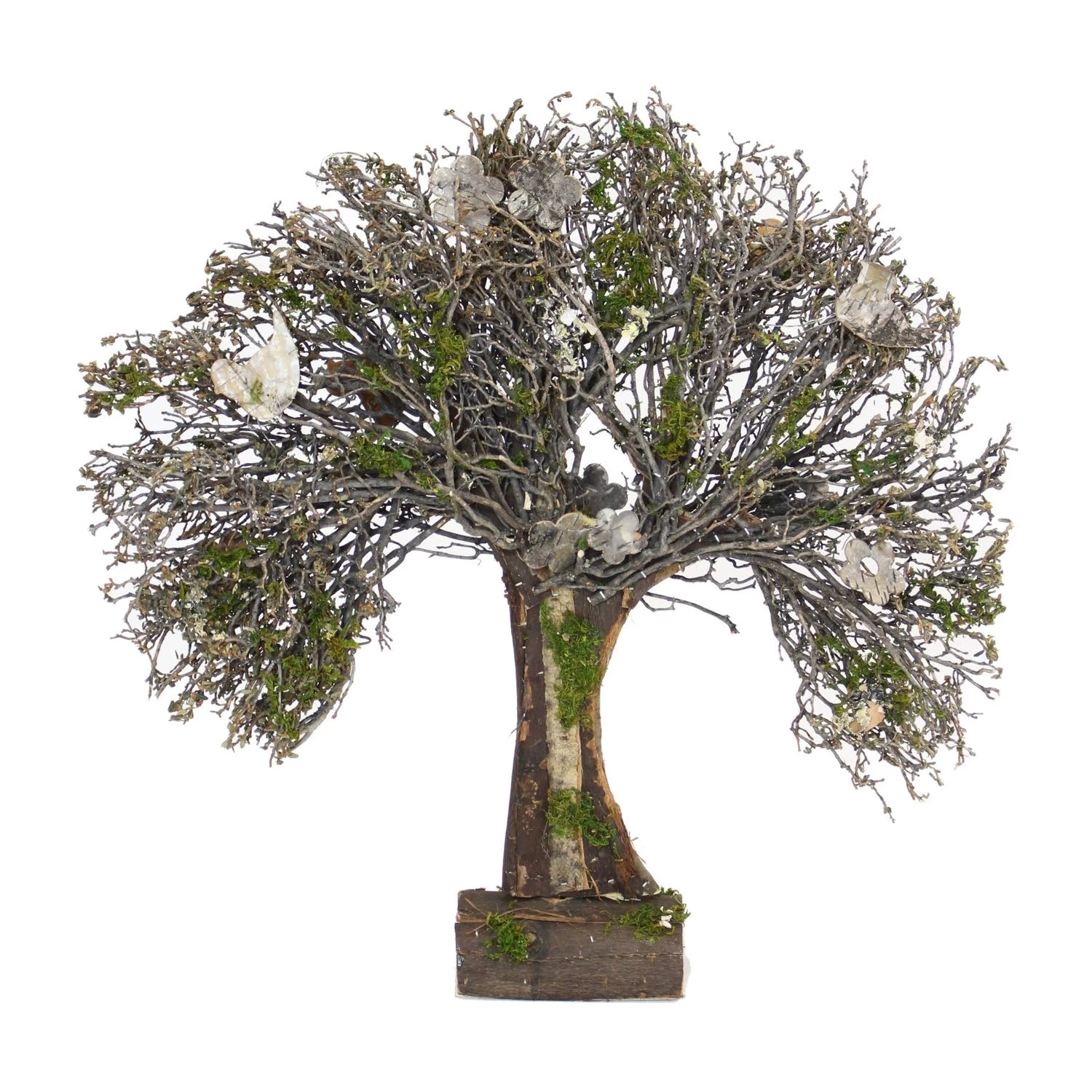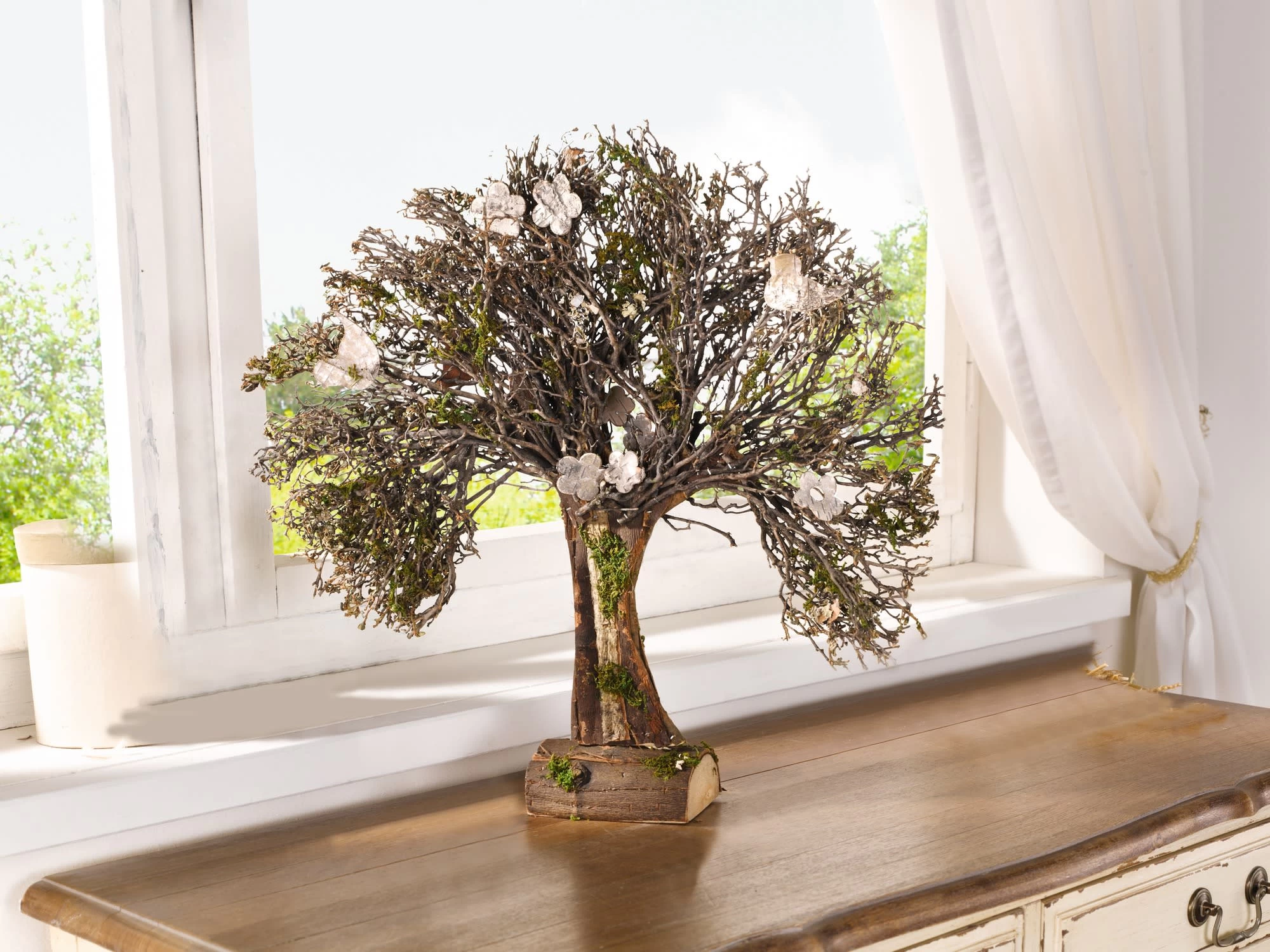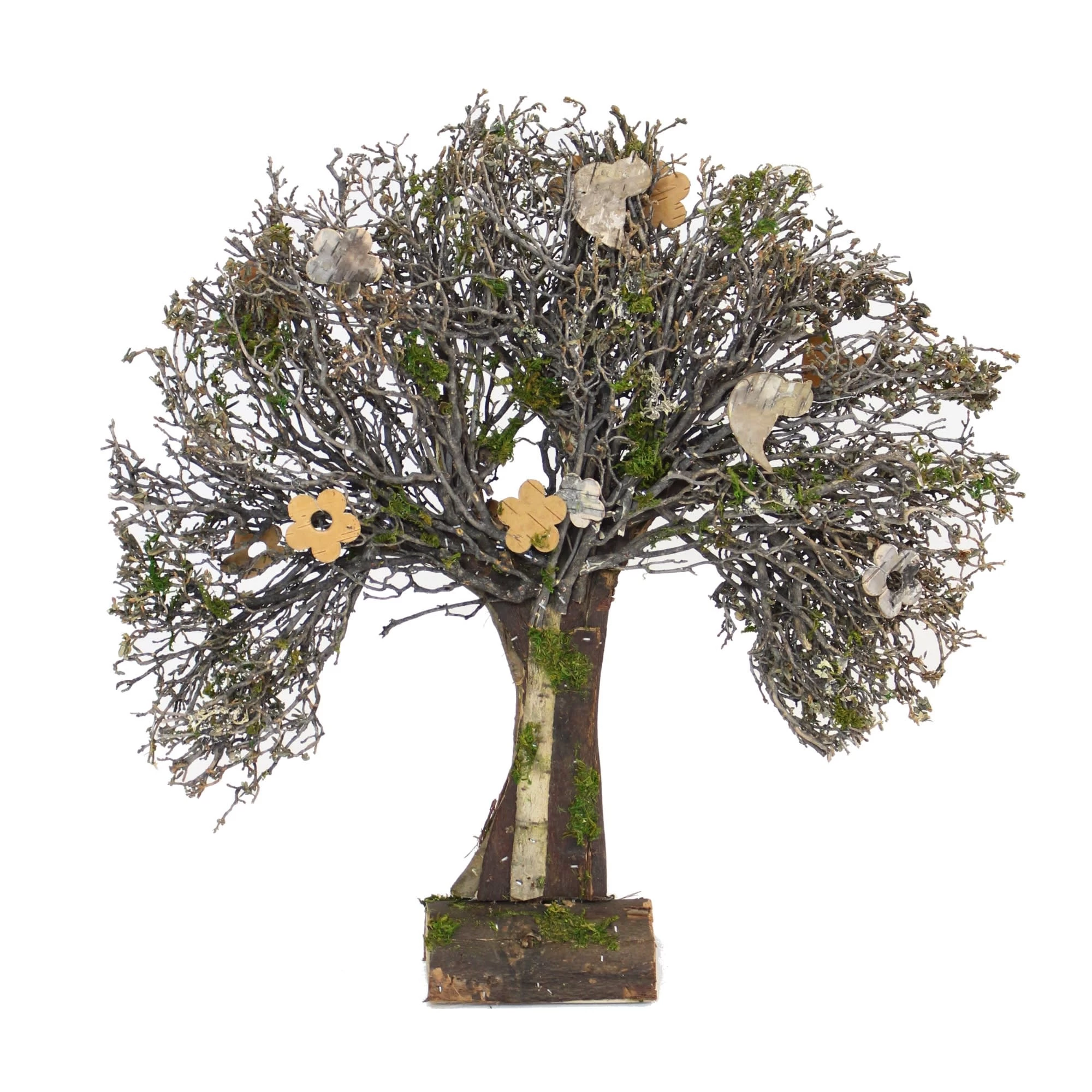 tolles Deko-Objekt in charmant ländlicher Optik, Holzkern mit Rinde ummantelt und aufwändig mit verschiedenen Naturmaterialien verziert, niedliche Vogel- und Blütendeko aus Birkenrinde