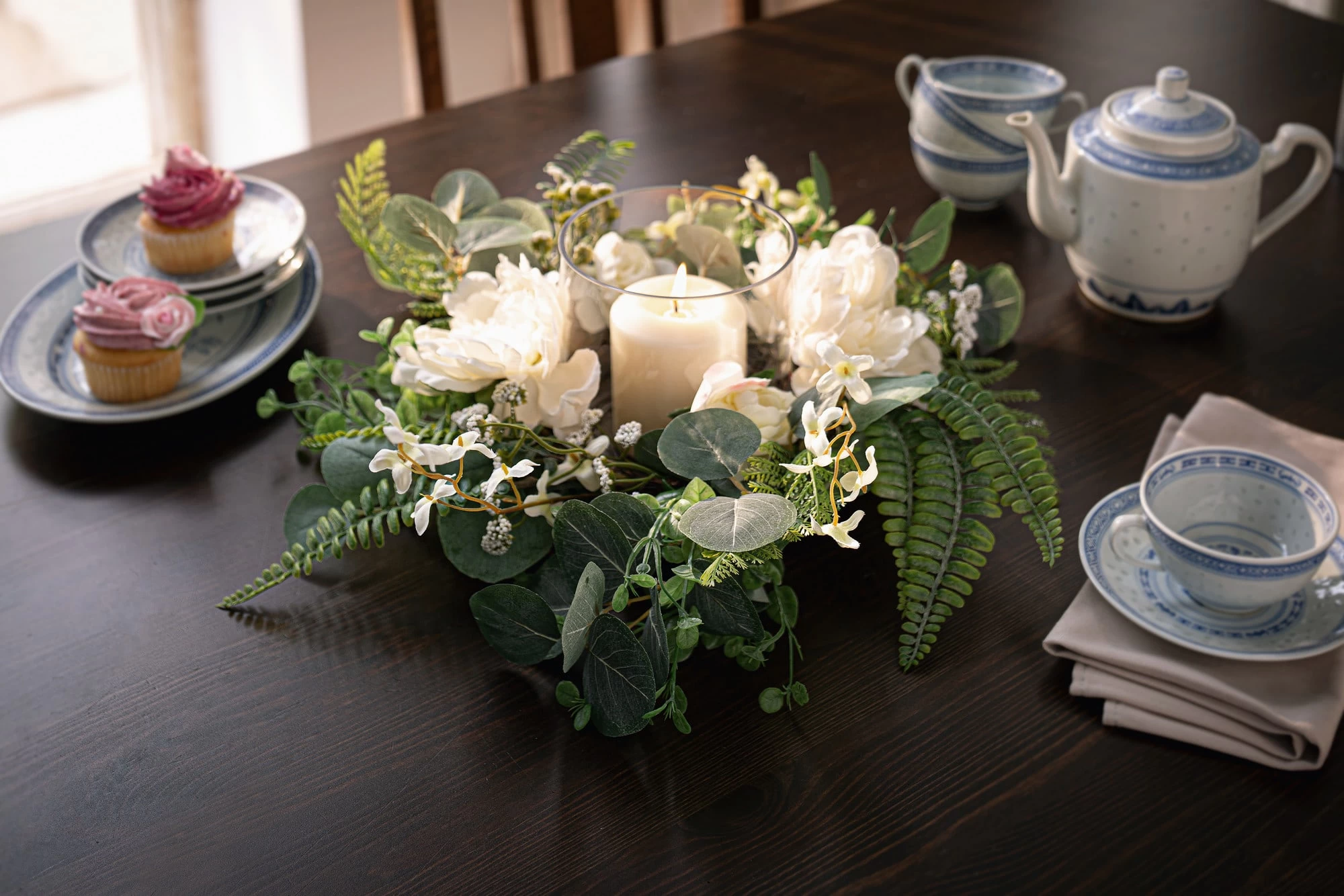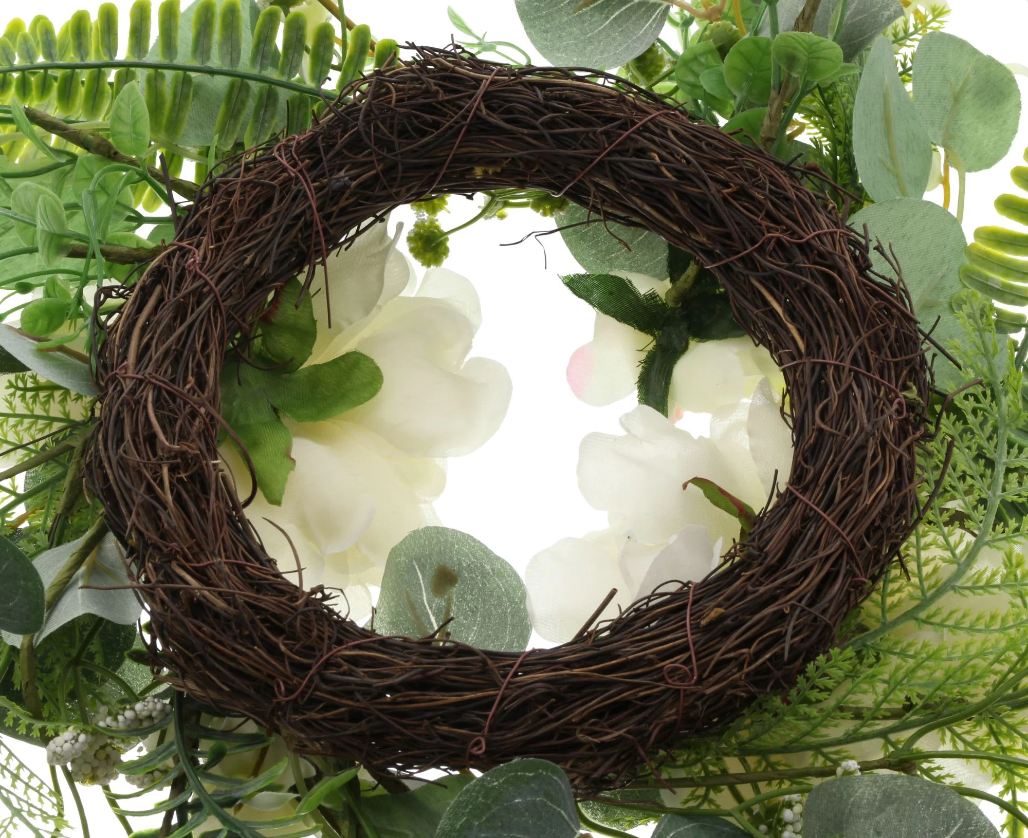 Textilblüten in edlem Creme, täuschend echt gearbeitet, Kunststoff in verschiedenen Grüntönen