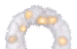 Dekorartikel Metall kupferfarben, Kunststoff weiß, Schiebeschalter, Timer, Ring mit weißen Federn, Timer 6Std ON/18Std. OFF, ø: 350mm, inkl. 10x LED 0.06W 3V, 2600K