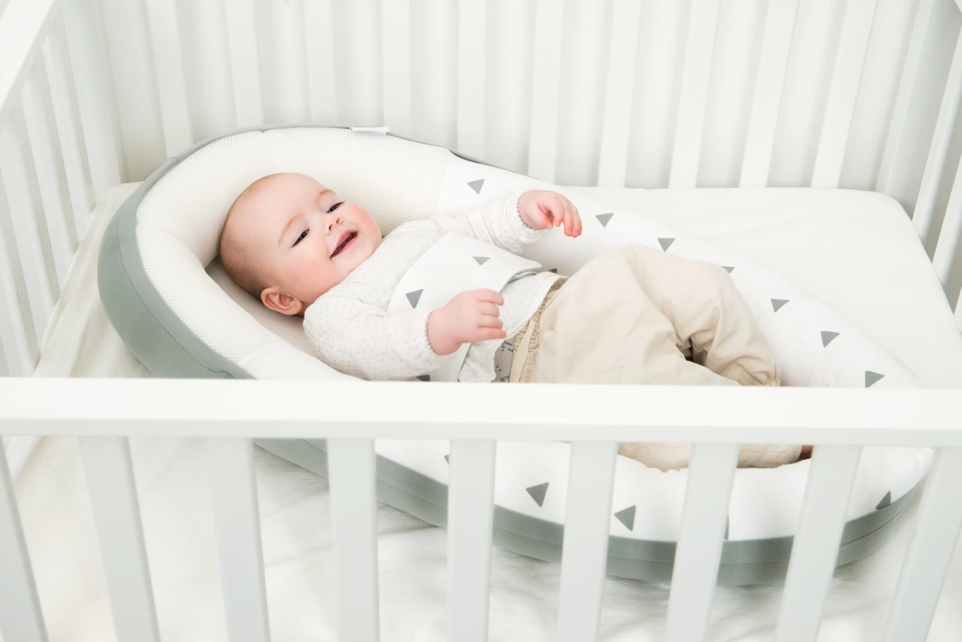 • Atmungsaktives 3D-Material um den Kopf des Babys