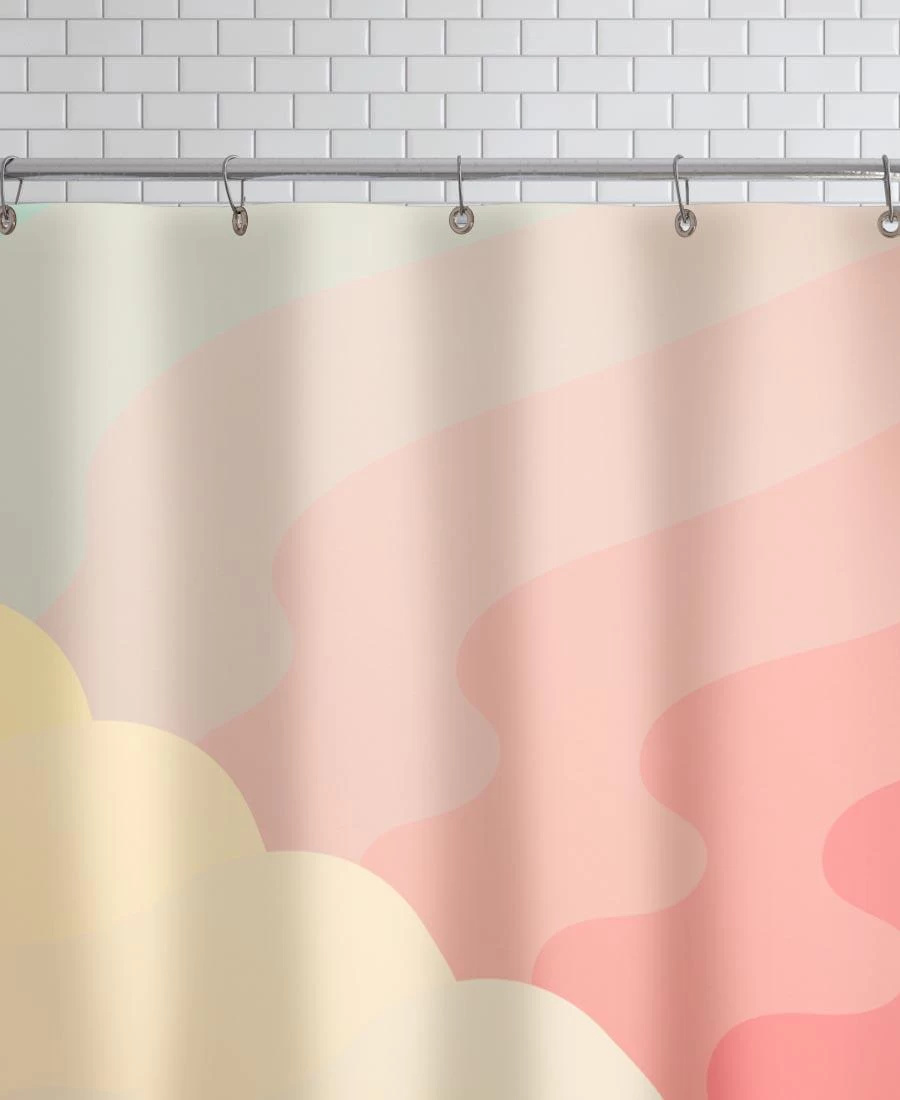 Wasserabweisender Duschvorhang aus Polyester mit einseitigem Motivdruck. Fadenvernäht. Mit vernickelten, rostfreien Metallösen. Aufhängung (Duschvorhangringe) nicht inklusive.