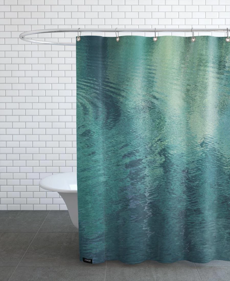 Wasserabweisender Duschvorhang aus Polyester mit einseitigem Motivdruck. Fadenvernäht. Mit vernickelten, rostfreien Metallösen. Aufhängung (Duschvorhangringe) nicht inklusive.
