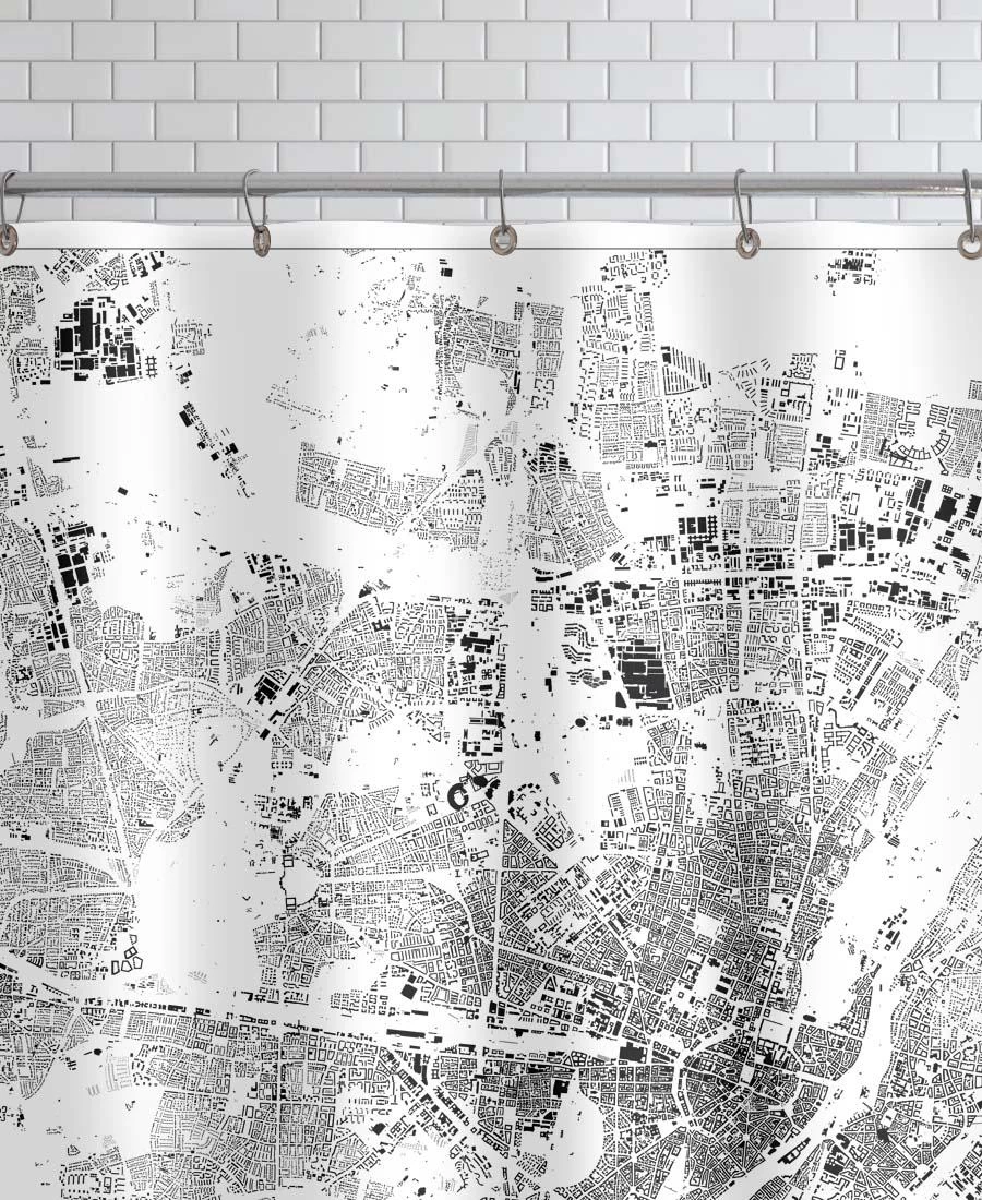 Wasserabweisender Duschvorhang aus Polyester mit einseitigem Motivdruck. Fadenvernäht. Mit vernickelten, rostfreien Metallösen. Aufhängung (Duschvorhangringe) nicht inklusive.