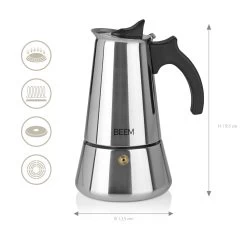 Mit Sicherheitsventil, klassischem Aufbau und hitzebeständigem Griff bietet dir der BEEM ESPRESSOMAKER Espressokocher – 6 Tassen alle Features, die notwendig sind.