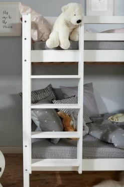 Etagenbett „Finn“ wurde aus massiver Kiefer gefertigt und bietet auf zwei gemütlichen Liegeflächen viel Platz für den erholsamen Schlaf. Um sich den Gegebenheiten im Zimmer ideal anzupassen lässt sich die Leiter wahlweise rechts oder links montieren. Durch optionales Zubehör wie z.B. Bettschubkästen und Vorhangstoffe lässt sich dieses schöne Bett individuell an seine Benutzer anpassen.