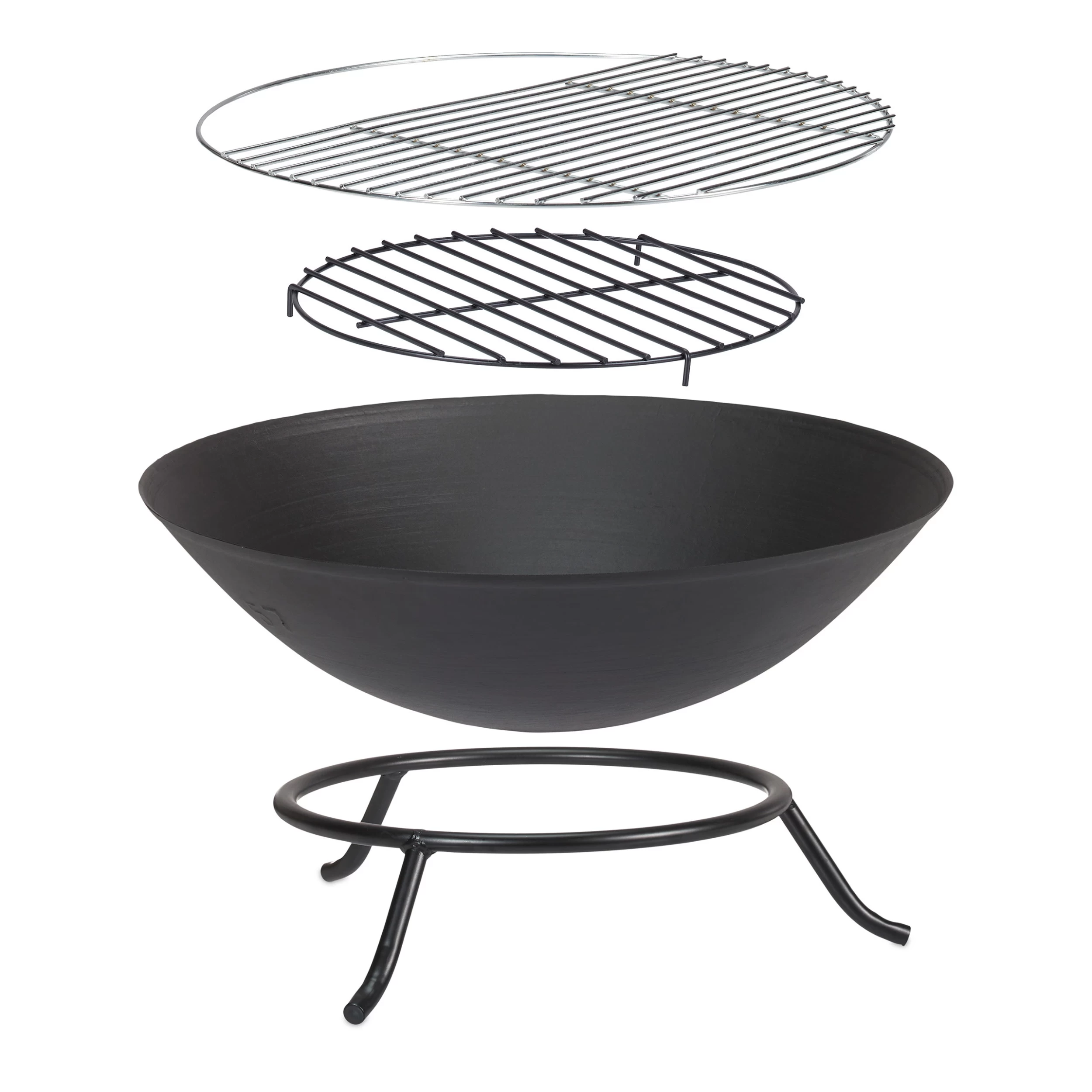 Entfachen Sie in Ihrem Garten ein gemütliches Lagerfeuer und verbringen Sie vor der knisternden Feuerstelle entspannte Stunden mit Familie oder Freunden. Während sich mit dem beiliegenden Schürhaken das Feuer entfachen lässt, sorgt der Feuerrost für ausreichende Luftzirkulation. Dank des Grillrosts lässt sich der Feuerkorb auch gleich zur Zubereitung von leckerem Grillgut verwenden. Die Brennschale aus Gusseisen mit Stahlhalter überzeugt dabei mit ihrem rustikalen Look.