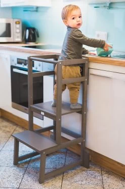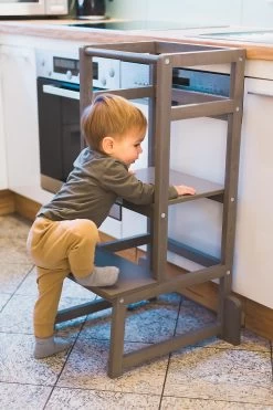 Der Lernturm „Vista“ von fillikid ist perfekt für Kleinkinder, die immer selbstständiger werden und aktiv den Alltag mitgestalten möchten, doch nicht immer überall herankommen. Der umlaufende Rausfallschutz verhindert dabei zuverlässig ein Herunterfallen oder ins „Leere“ treten. Dank der dreifach höhenverstellbaren Trittfläche kann sich der Lernturm individuell an die Größe der Kinder anpassen. So können sie beim Kochen oder Backen jederzeit auf Augenhöhe zuschauen oder sogar mithelfen.