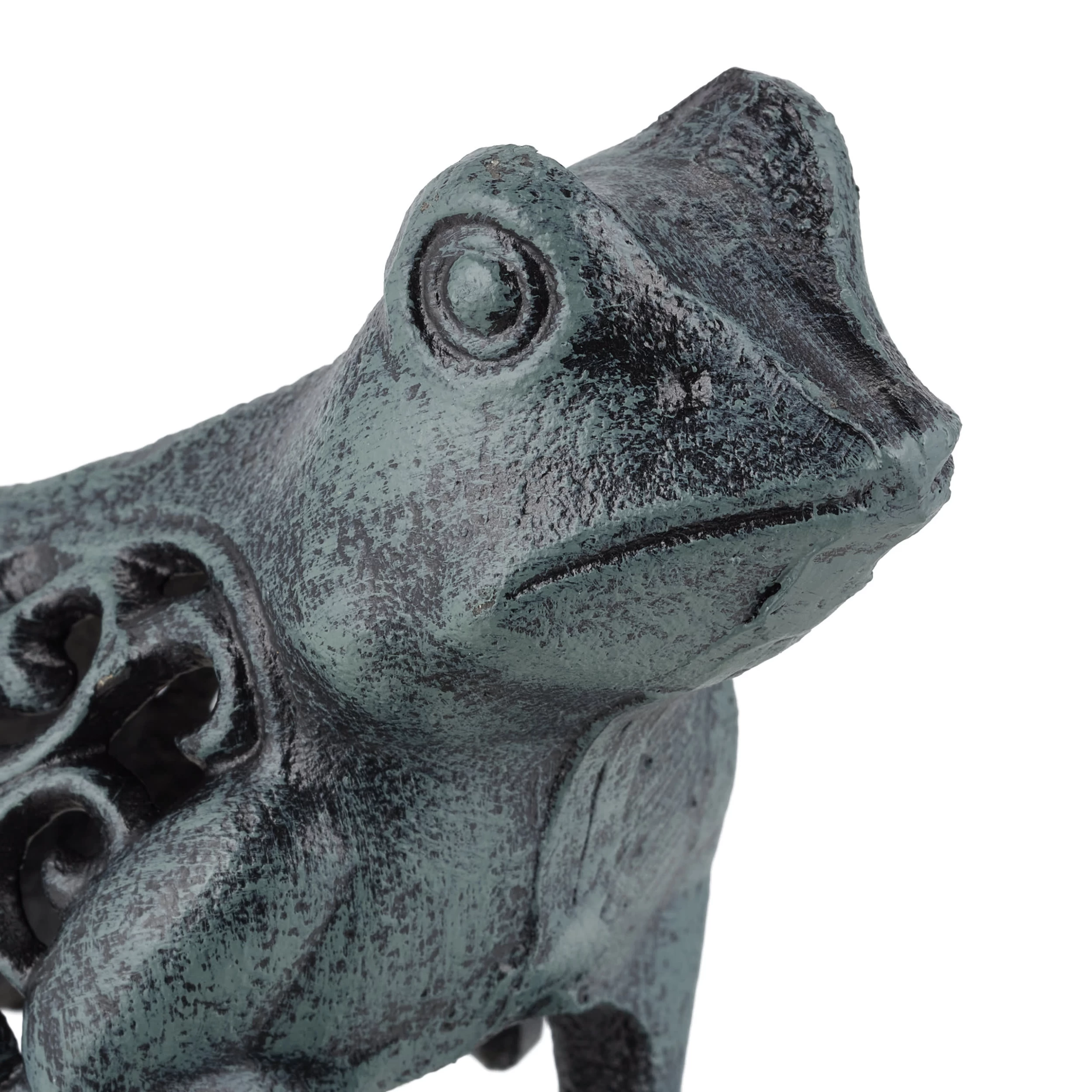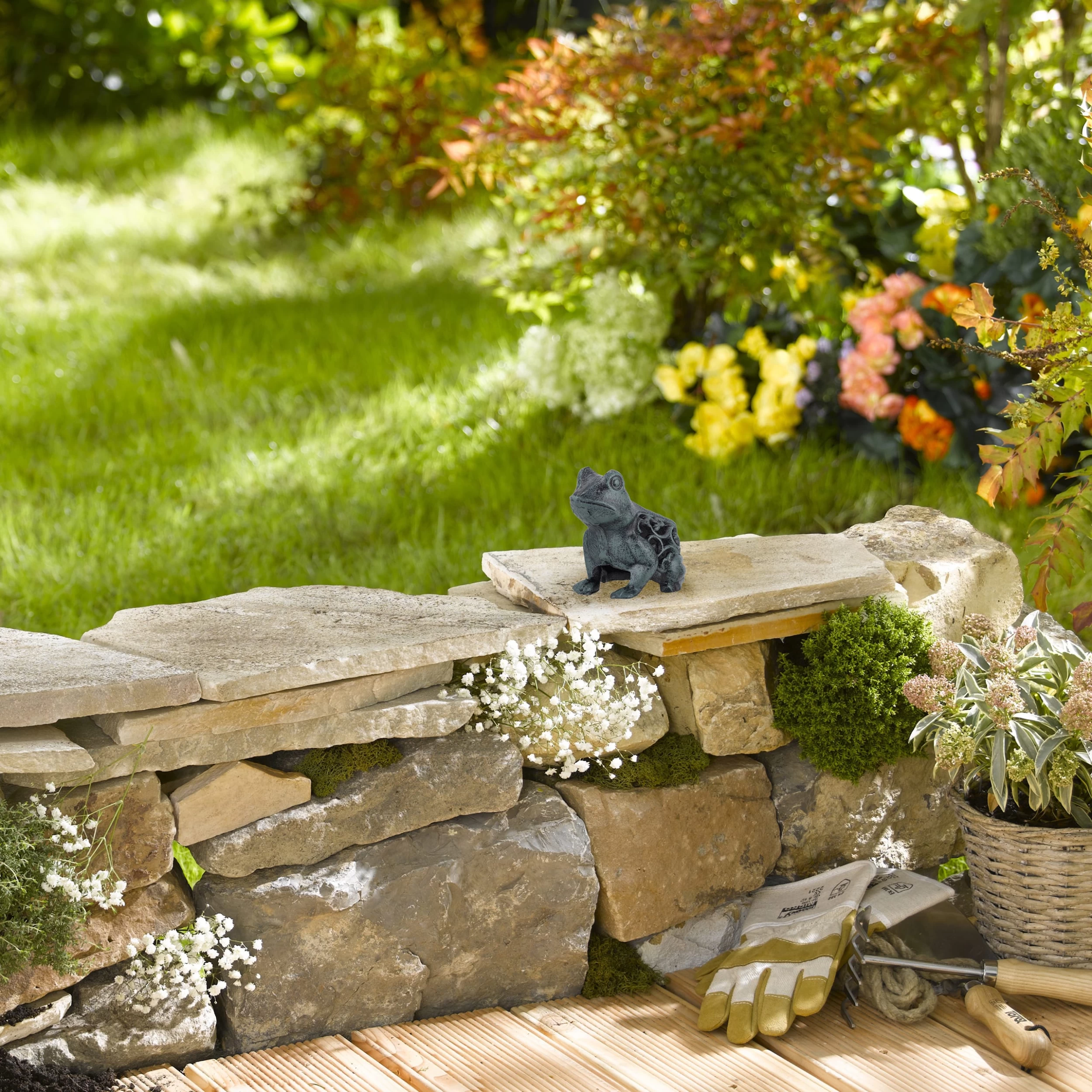 Die Deko Froschfigur ist ein tolles Accessoire für Garten, Terrasse und Balkon. Ob im Stein- oder Blumenbeet, neben dem Gartenteich oder auf Mauern und Steinen platziert – der Frosch mit dekorativ gestaltetem Rücken ziert den Außenbereich und sorgt für märchenhaftes Flair. Dank der Fertigung aus wetterfestem Gusseisen wirst Du lange Freude an der robusten Gartenfigur haben. Die Dekofigur eignet sich auch hervorragend als Geschenkidee für Froschfans und Liebhaber von Gartendeko.