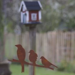 Schöne Gartendekoration 3 Vögel auf Ast aus Metall für Ihren Garten, Balkon oder Terrasse