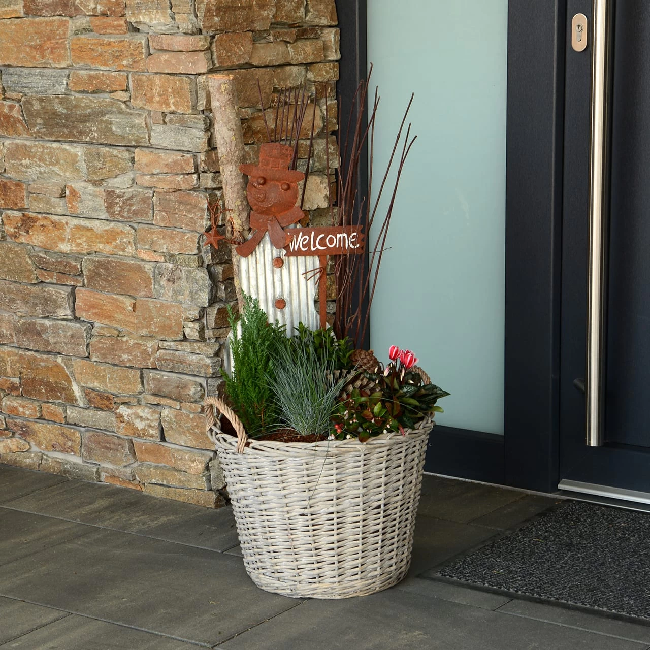 Diesen Schneemann können Sie wunderbar in Ihren Pflanztopf vor der Haustür