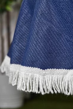 Gartentischdecke aus hochwertigen Weichschaum mit optisch ansprechenden weißen Fransen umnäht.