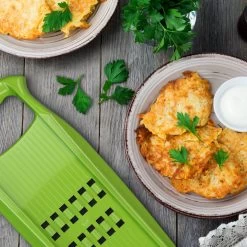 Egal ob Kartoffeln, Karotten, Sellerie oder aepfel, Birnen, selbst Hartkaese ist fuer unsere handliche Kuechenreibe kein Problem.