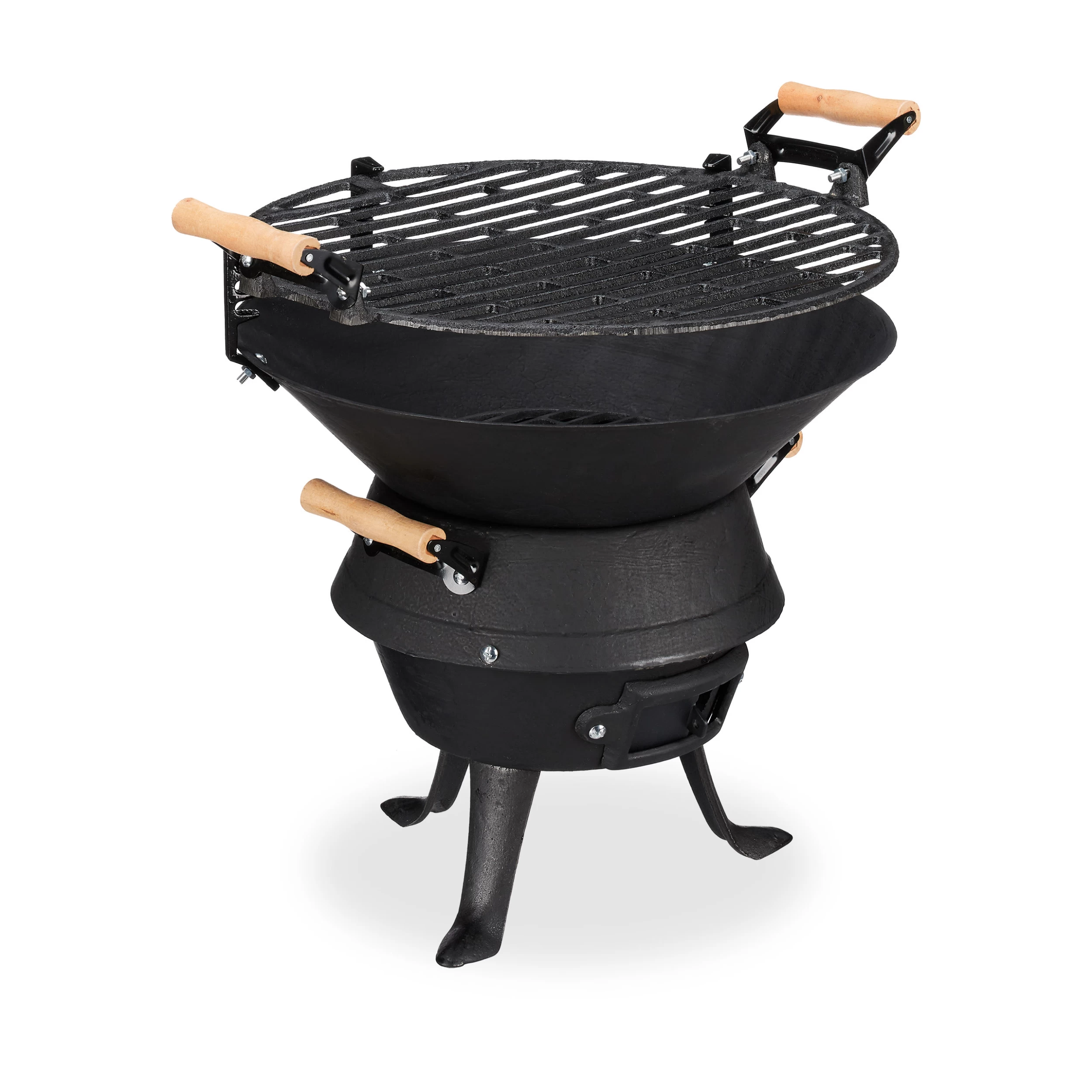 Der rustikale Grill bietet mit seiner gusseisernen Feuerschale und seinen schönen Holzgriffen eine authentische Feuerstelle für sommerliche Grillabende. Bruzeln Sie leckere Würstchen, Steaks und Gemüsetaschen auf der 35cm umfassenden Grillfläche des Grillfasses. Die Holzkohle wird auf dem Kohlerost, dank der optimalen Belüftung in der unteren Hälfte des Fasses, schnell erhitzt, sodass Sie nicht lange auf die heiße Glut warten müssen. Stellen Sie den Kohlegrill auf die Terrasse oder in den Garten und legen Sie los!