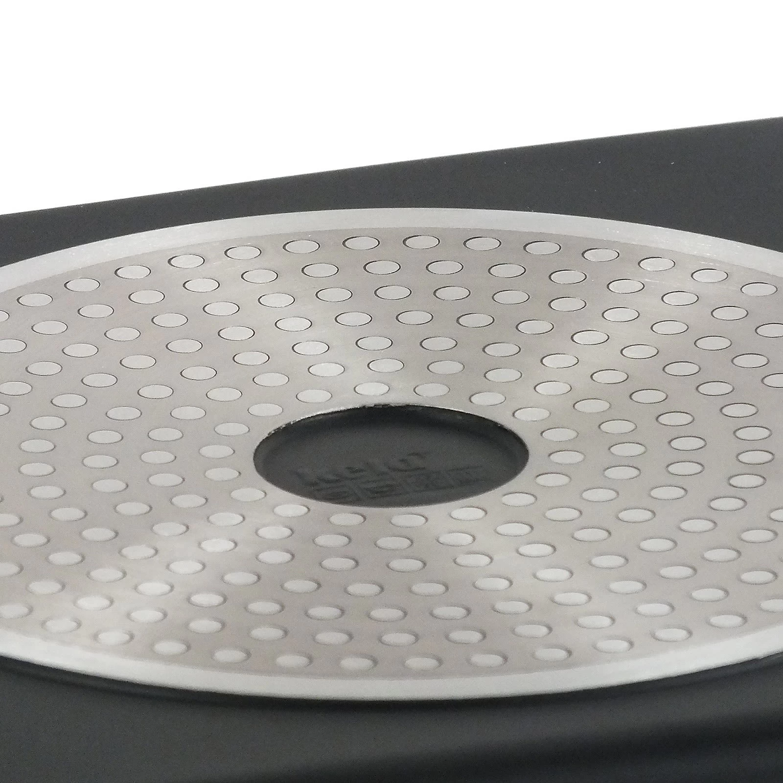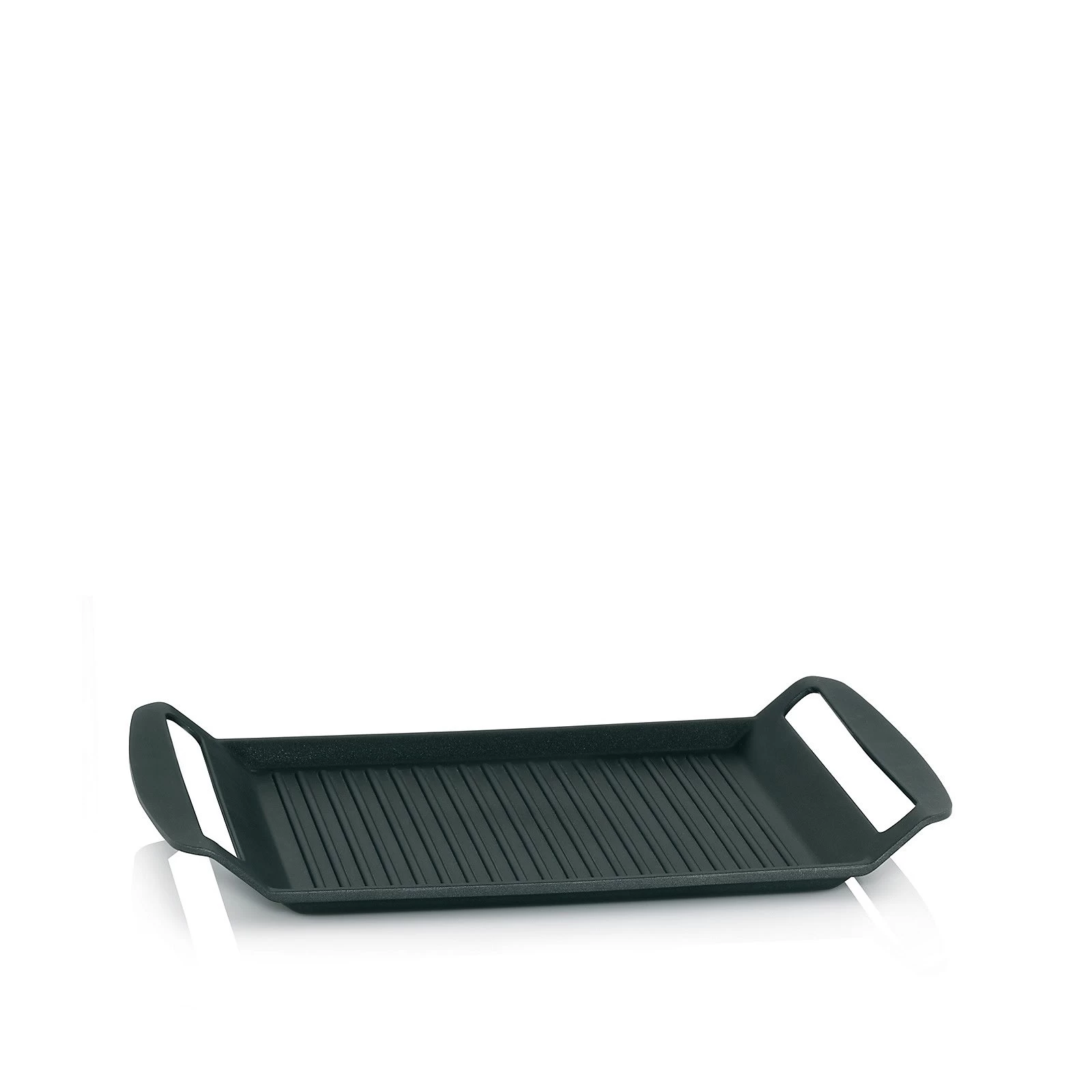 Grillplatte mit Antihaftbeschichtung für eine fettarme Zubereitung Laden Sie doch Ihre Freunde zum Grillabend bei Regen ein. Mit der Grillplatte Kerros werden Sie alle überraschen. Auf der Grillplatte aus Aluguss gelingen saftige Steaks, köstliche Meeresfrüchte und gesundes Gemüse. Die geriffelte Fläche sorgt für die typischen Grillstreifen und somit für die perfekte Optik des Grillgutes.Die Grillplatte Kerros kann auf allen Herdarten eingesetzt werden und darf bis zu einer Temperatur von 230° in den Backofen.Die Antihaftbeschichtung Greblon C3 aus dem Hause Weilburger (Germany) garantiert fettarmes Braten und verhindert ein Anbrennen. Die spezielle Beschichtung macht die Platte extrem kratzfest. Die beschichtete Grillplatte hat eine Größe von 30 x 24 cm. Die Grillplatte und eine Grillpfanne runden das umfangreiche Sortiment der Serie Kerros von Kela ab. Schauen Sie gerne noch nach Bratpfanne, Schmorpfanne, Servierpfanne, Bräter, Rechteck-Bräter oder dem Fleischtopf.