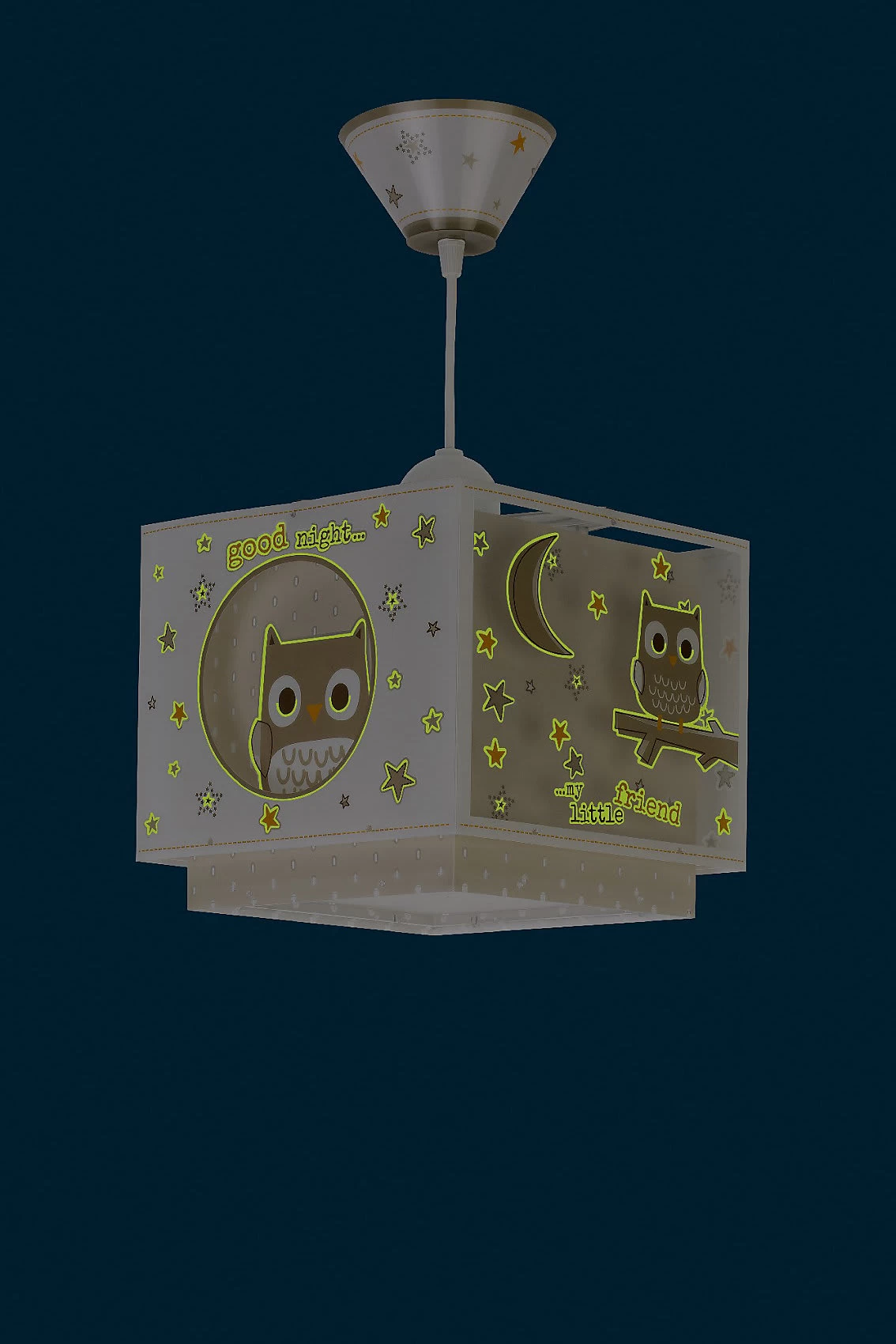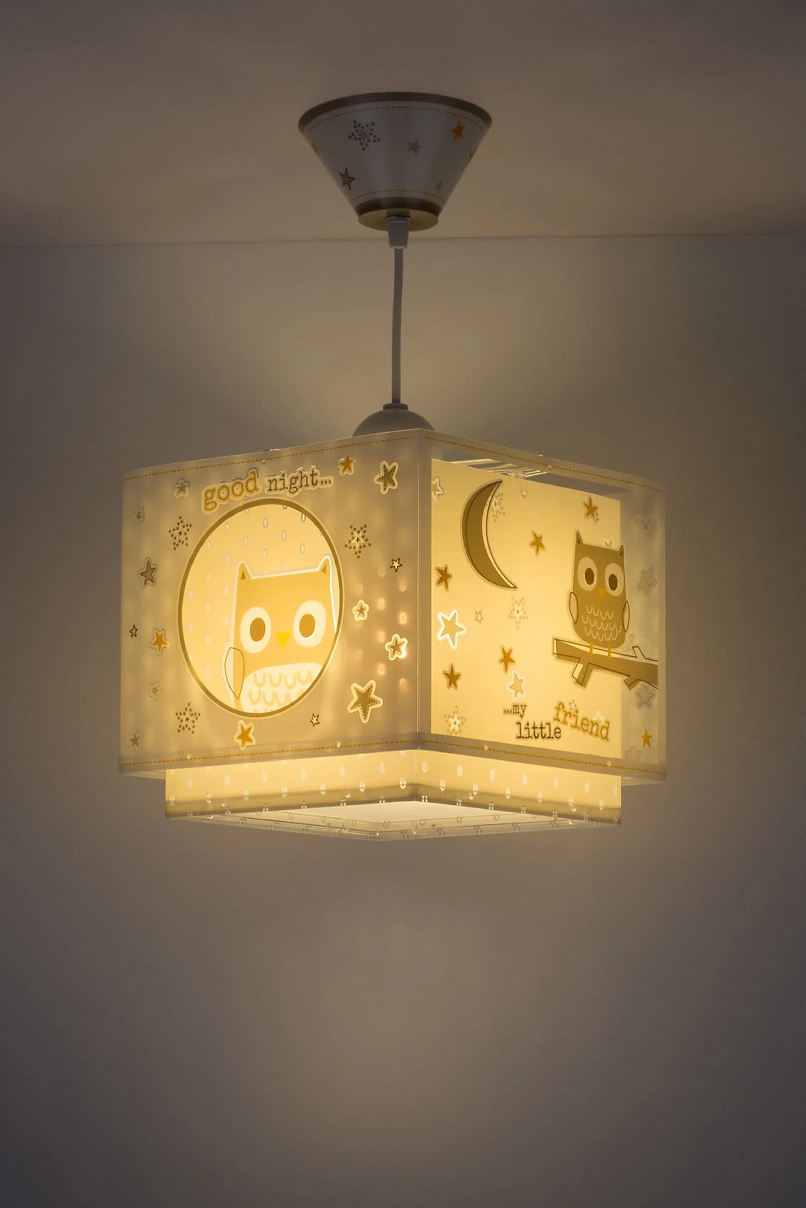 Eule, Mond und Sterne: Die Deckenlampe Good Night von Dalber mit dem niedlichen abendlichen Design sorgt für ein behagliches Licht im Kinderzimmer. Die fluoreszierenden Motive leuchten nach dem Abschalten der Lampe noch einige Zeit weiter. Deckenlampe Good Night von Dalber mit Eulen-, Mond- und Sternmotiven quadratischer, doppelter Lampenschirm fluoreszierender Effekt abnehmbarer Lichtdiffusor höhenverstellbar aus Polypropylen Die Good Night-Kinderzimmerlampe mit der niedlichen Eulen- und Sternendekoration wirft ein angenehm mildes Licht. Sie sorgt für die perfekte Grundbeleuchtung beim Spielen oder bei den Hausaufgaben. Der doppelte Lampenschirm verleiht dem Design eine tolle Tiefenwirkung. Sie kommt besonders gut zur Geltung, wenn die Umrisse der Motive nach dem Ausschalten noch einige Minuten nachleuchten. Die höhenverstellbare Lampe kann genau auf die Raumhöhe angepasst werden. Der untere Lichtdiffusor mildert das Licht angenehm ab und verhindert, dass Dein Mini geblendet wird. Hinweis Das passende Leuchtmittel (E27, 15W LED) ist nicht im Lieferumfang enthalten.