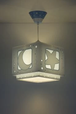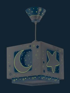 Diese niedliche Hängelampe in Hellblau und Weiß ist ein echter Blickfang im Kinderzimmer. Mond und Sterne erhellen das Kinderzimmer mit einem warmen Licht.