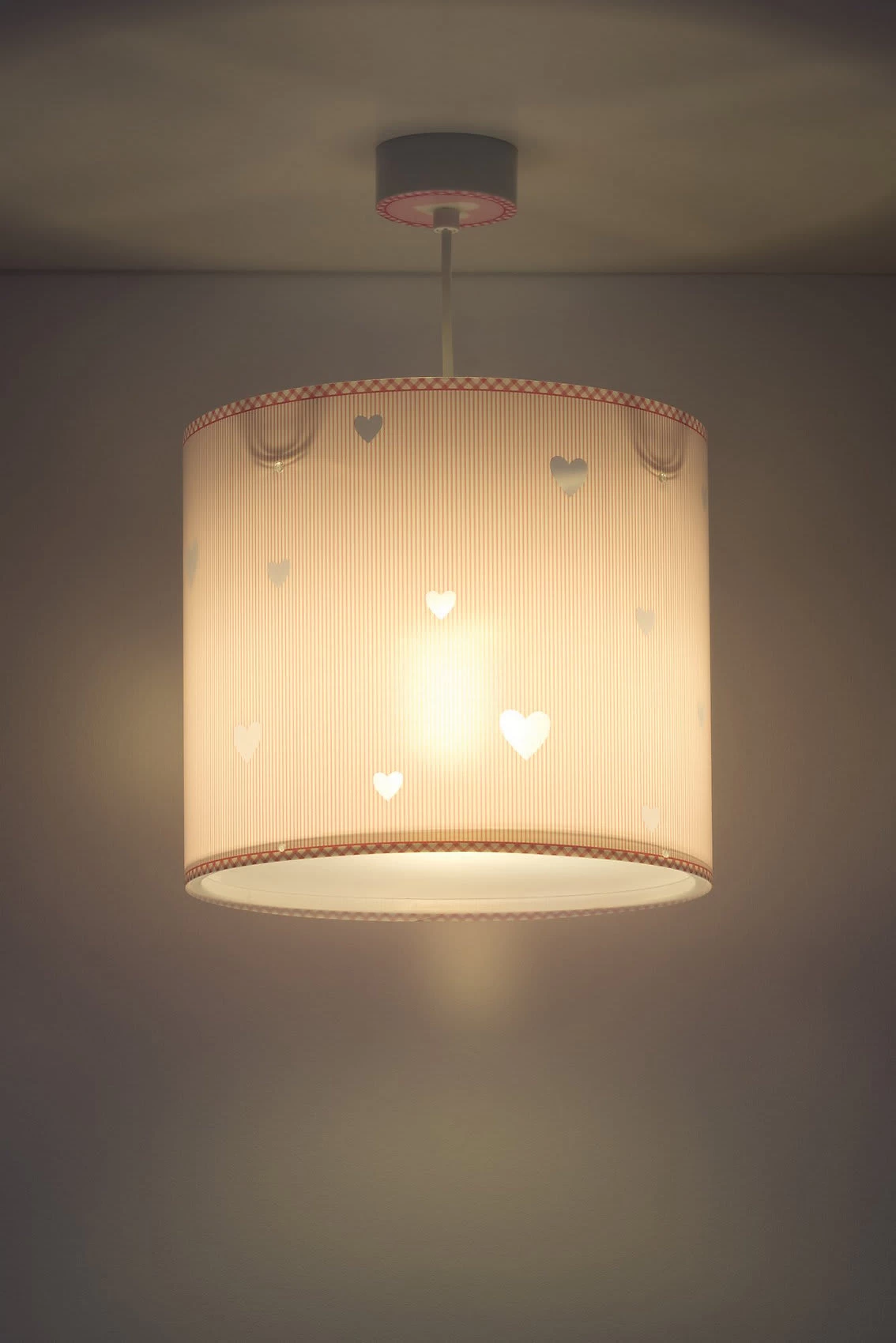 Diese tolle Hängelampe von Dalber mit den rosanen Streifen und den niedlichen Herzchen wird schnell zum absoluten Hingucker in jedem Kinderzimmer.