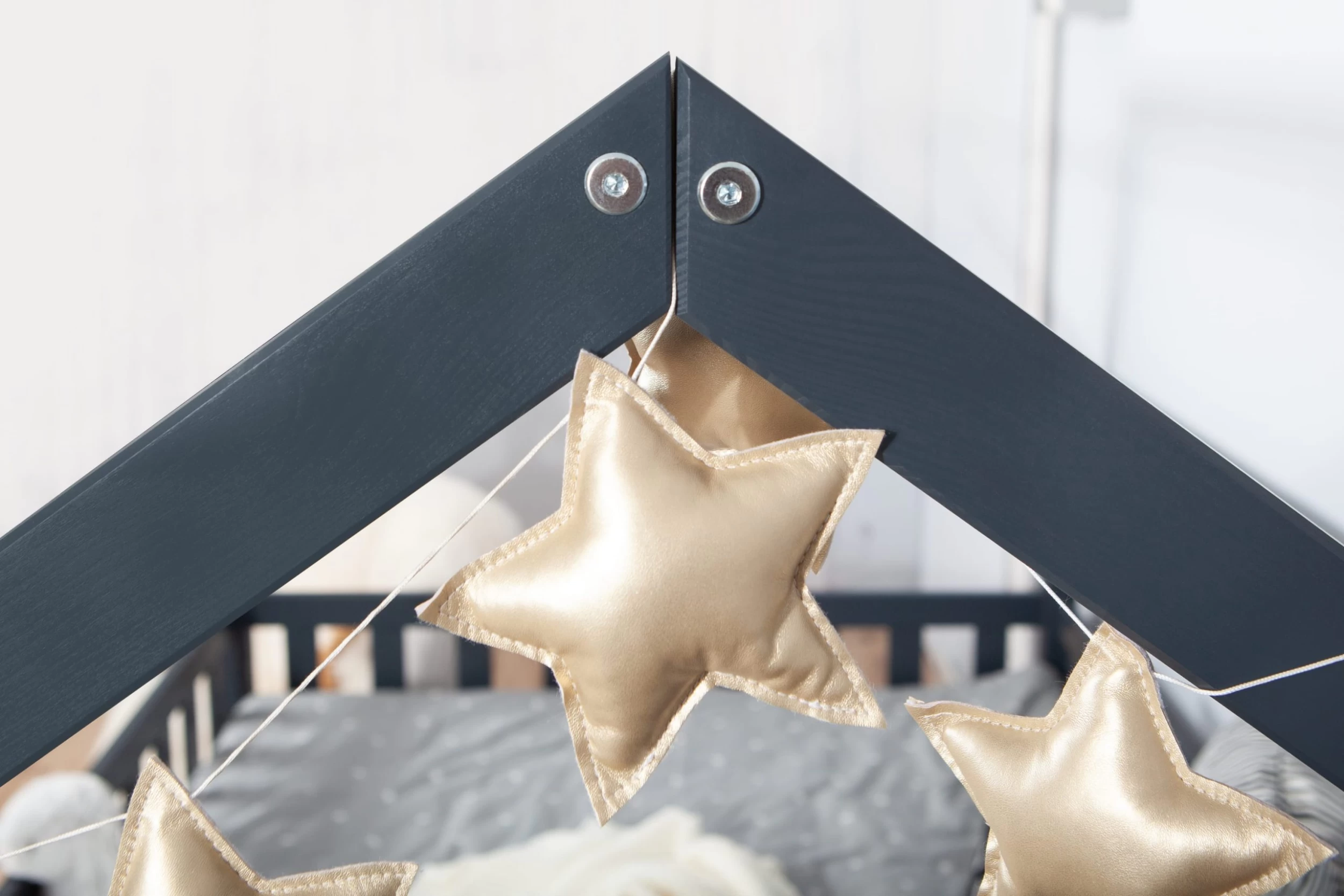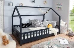 Ein richtiger Kindertraum – Dieses hochwertige, minimalistische Hausbett in edler Optik lädt zum Träumen ein und bietet deinem Schatz einen Ort zum Wohlfühlen und Austoben. Das aus massiver Kiefer gefertigte Bett bietet eine Liegefläche von 120 x 200 cm. Der individuellen Gestaltung deines Hausbettes sind keine Grenzen gesetzt. So wird das Toben richtig schön.